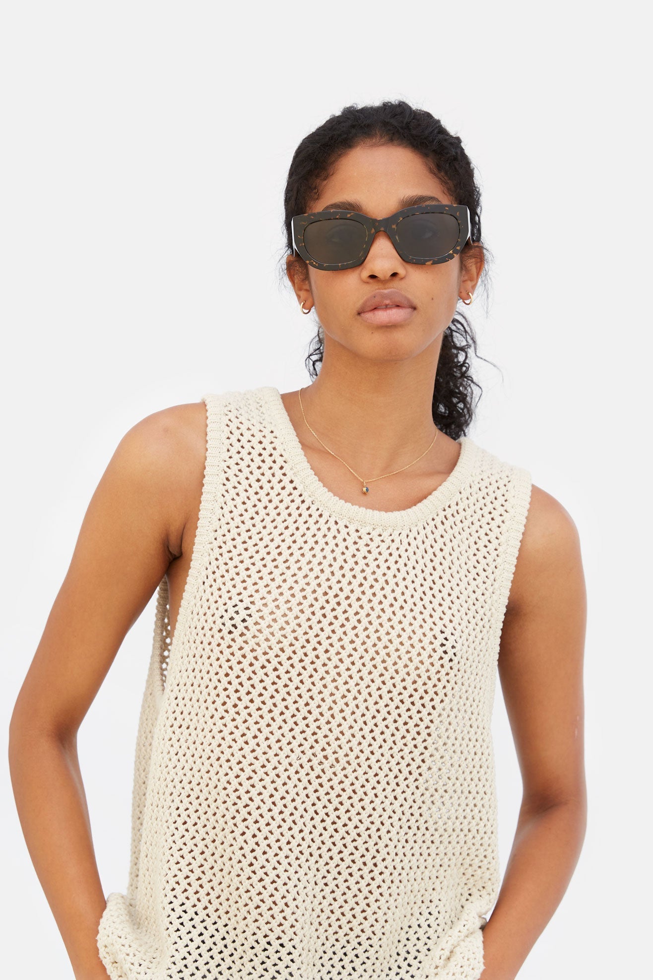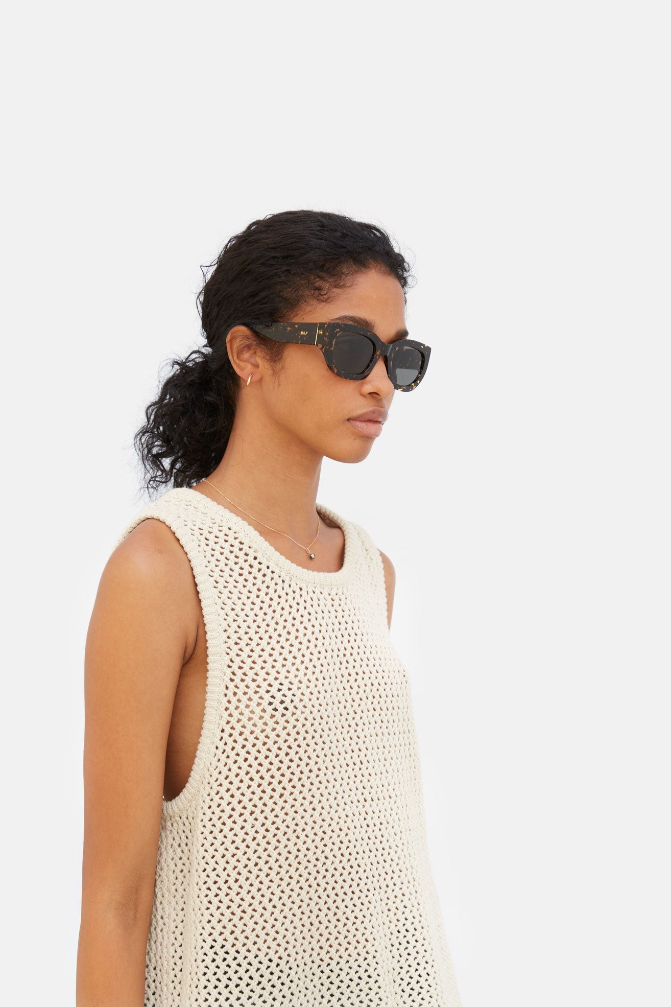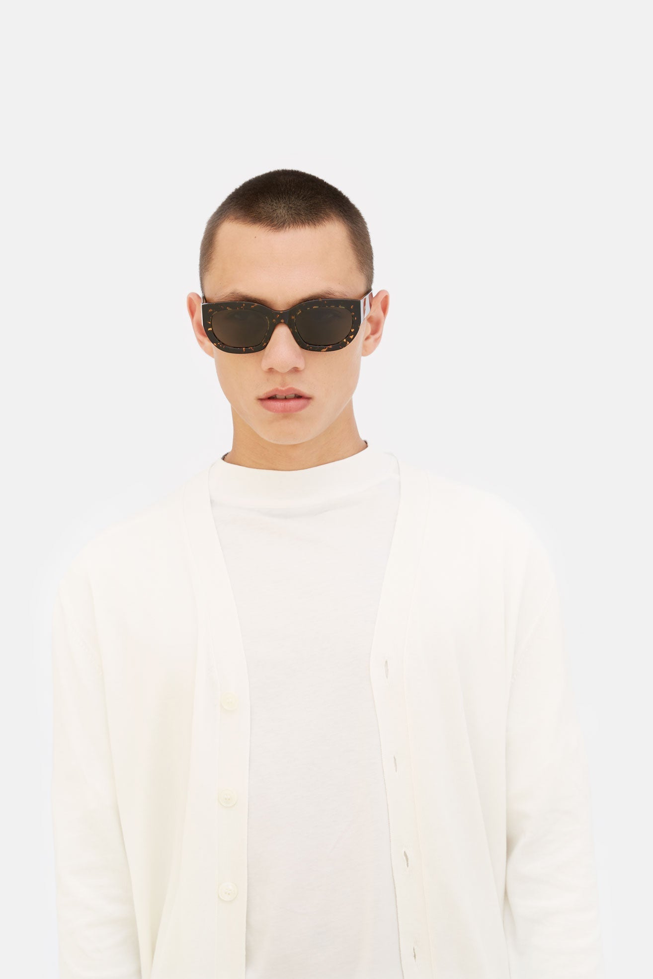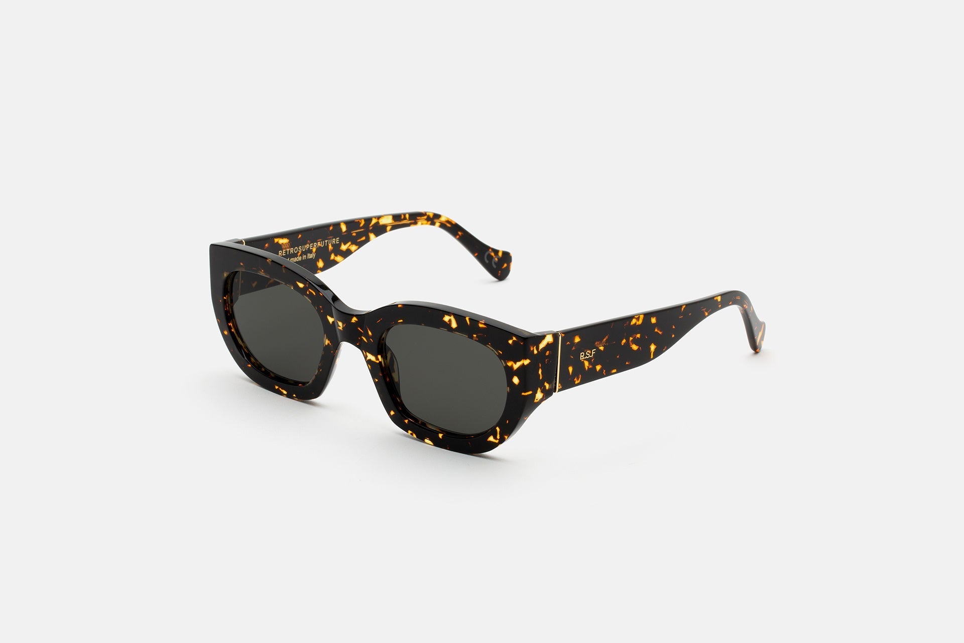 Eyewear design that transcends seasonal trends, capturing that sharp, timeless elegance with RSF’s thick acetate rims and a playful flair. Alva crosses over from the sunny Riviera to the busy streets of our cities. Day and night. Its angular temples and fresh design balances the rounded appeal of its broad lenses. This version comes in a spotted Havana acetate with black lenses.