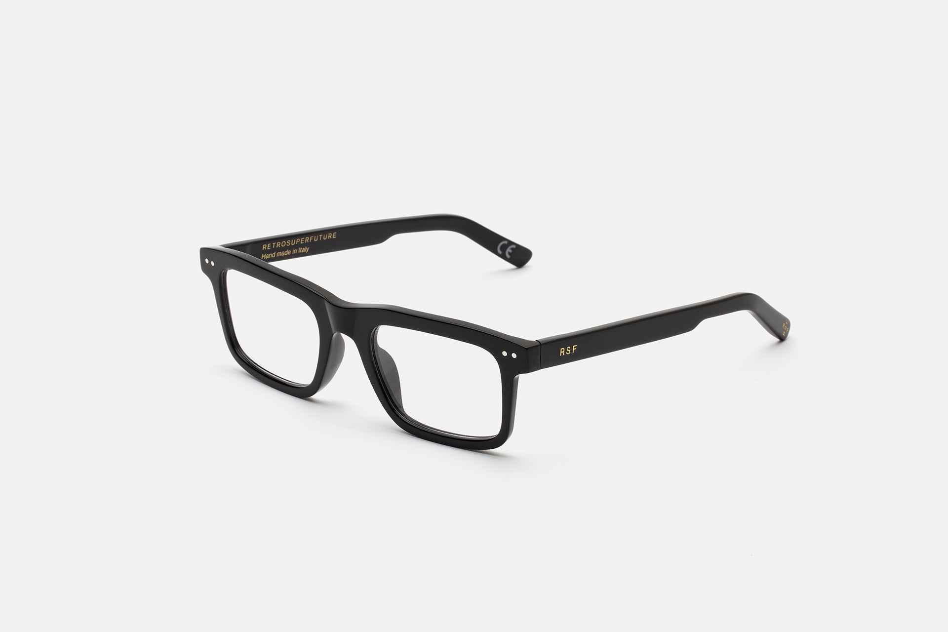Numero 101 is an essential angular silhouette that remixes classic geometric frames from the 1950s in a contemporary language. With its thick nose-bridge and marked brow-line, this model captures the sharp, hard-edged aesthetics of mid-century design, adapting it for more fluid contemporary use. Numero 101 is unobtrusive and lightweight for an all-day-everyday use, while underlining a marked stylistic vision. This version comes in a shiny black acetate.