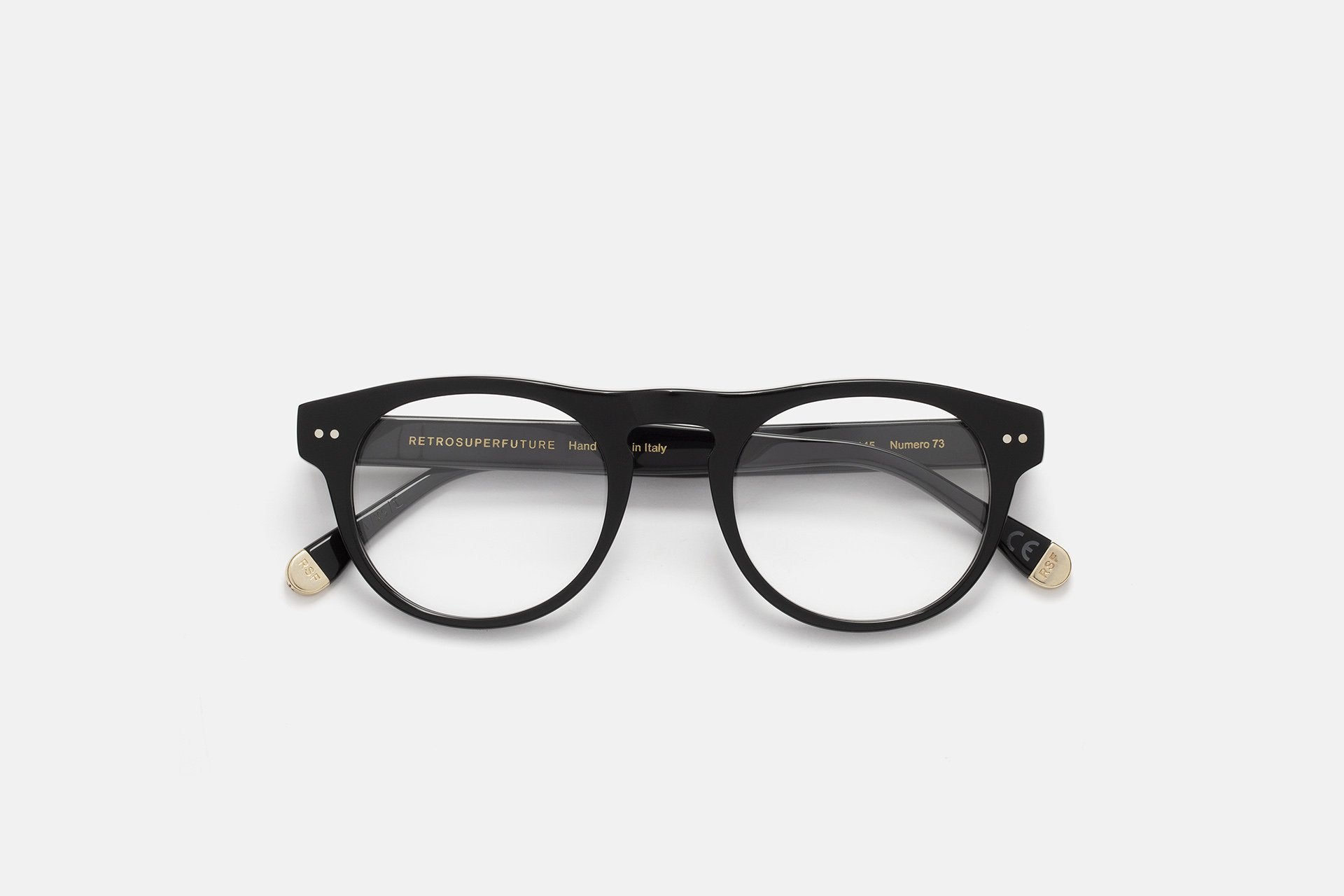 A modern interpretation of RSF’s classic everyday frames, Numero 73 is an oversized Optical silhouette designed with an eye towards bold streetwear aesthetics. The frame features well-rounded lenses, extra comfortable fit, sleek temples matched with an arched nose-bridge that gives it a sharp edge. This model comes in a shiny black acetate. Prescription lenses not included. The box contains a hard case and a cleaning cloth.