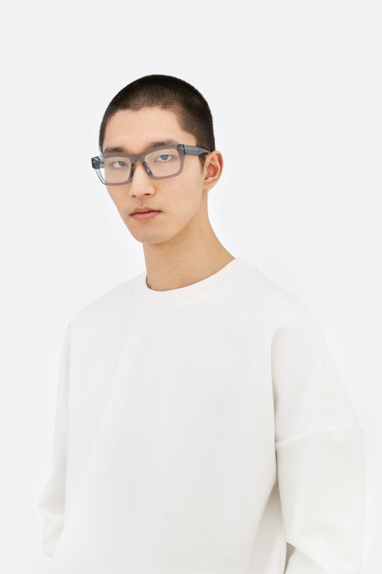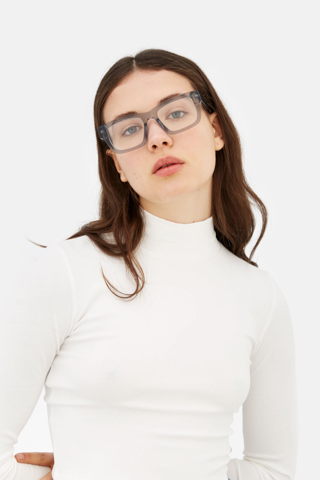 Sharp angles and precise geometries define Numero 108, a sleek all-day-everyday frame with a street edge. Angular lenses and pointed temples give this shape its distinctive features by elevating timeless modernist aesthetics. RSF’s signature sturdy acetate construction has been carved to offer a lighter, more functional and fitting design for everyday use, while still resulting in a bold shape full of character. Numero 108 comes in a sophisticated grey-blue acetate.
