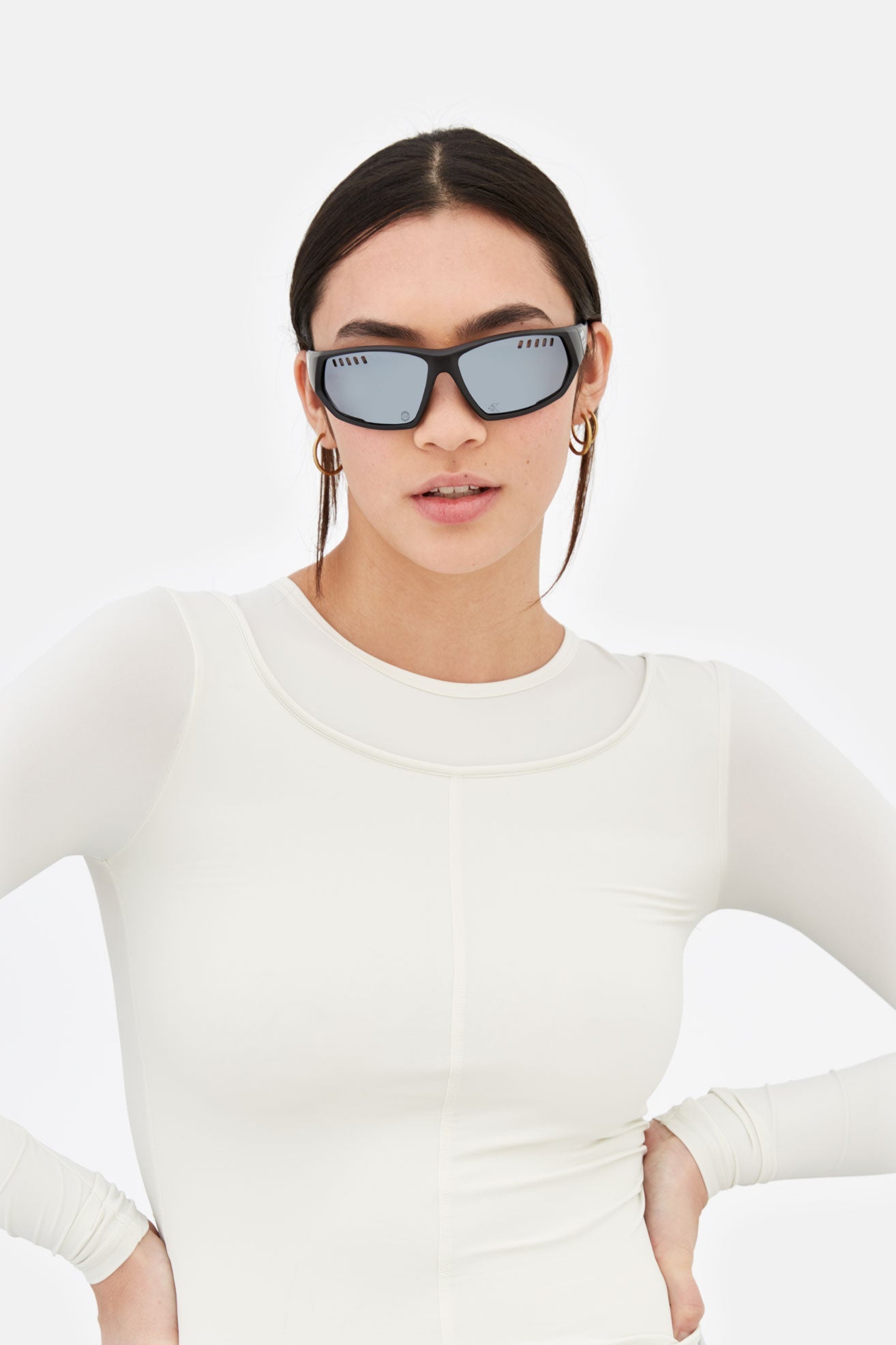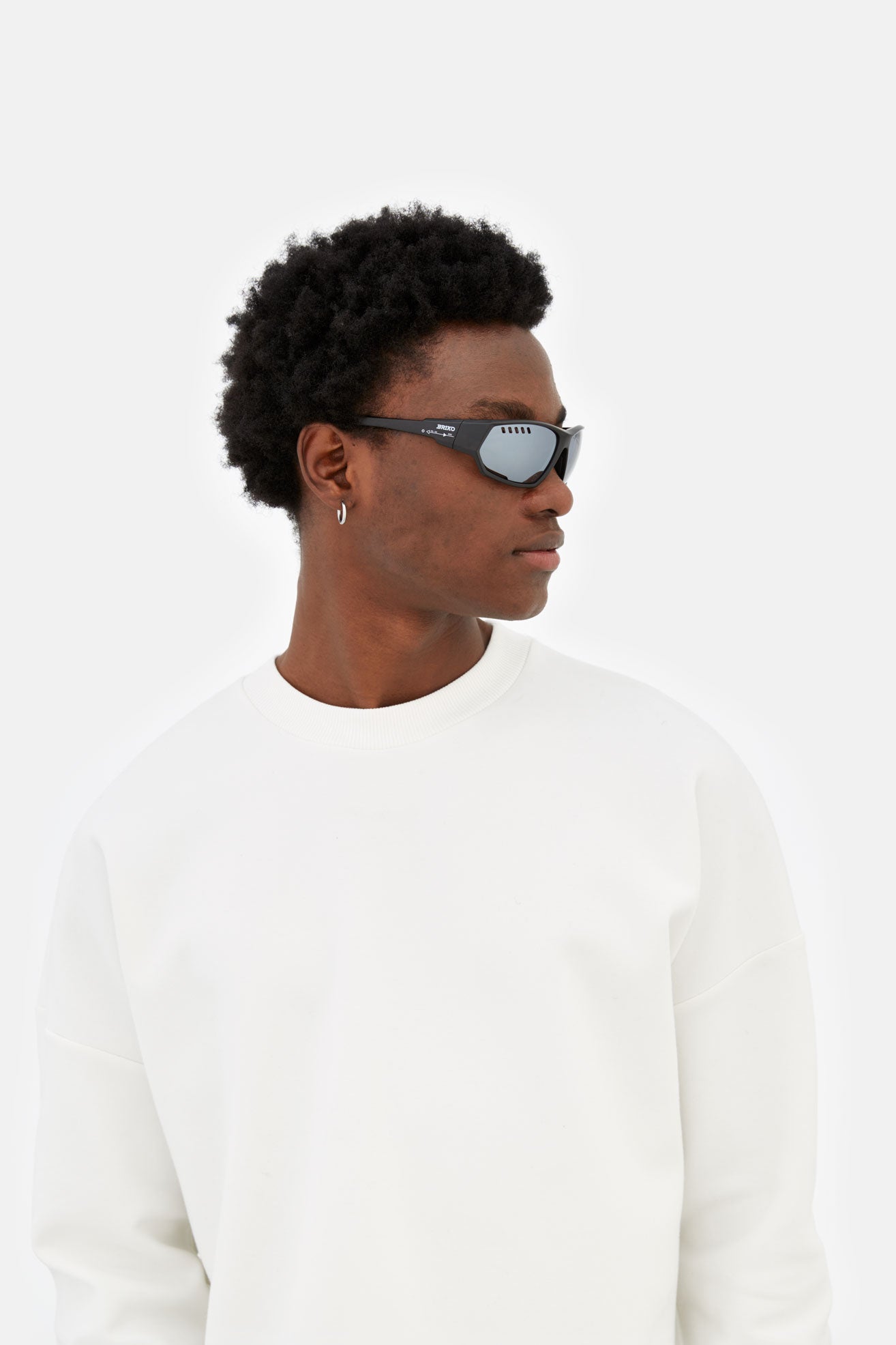 Designed exclusively for Briko, Antares is a sharp angular silhouette designed for a precise fit and maximum performance. The model’s squared lenses are encased within streamlined rims, characterised by a wrap-around design. The lenses feature ventilation slits for high-end performativity, while rubberised tips guarantee a perfect fit for this bold yet compact silhouette. This model comes with a black finish with grey lenses.