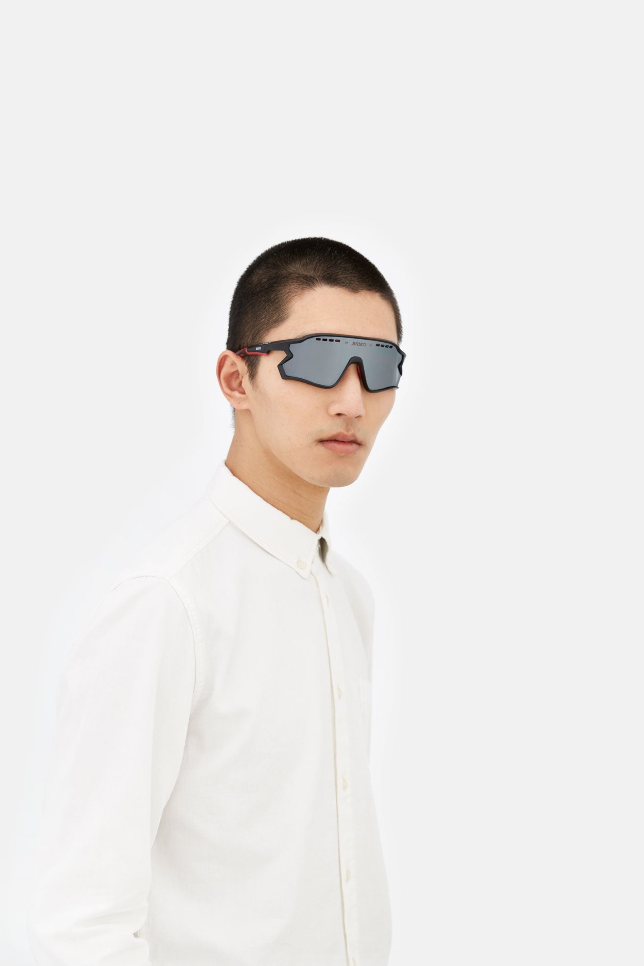 Designed exclusively for Briko, Daintree is a bold silhouette characterised by a sharp geometric aesthetics and high-end performance finishes. A mask-like shape, the model features contoured rims that hold its oversized lens firmly in place, while sleek, linear temples ensure a comfortable fit in extended use. Ventilation slits and top-end lenses guarantee maximum performance. Daintree was designed to fit with all types of helmets making it suitable for both winter and summer sports. This version comes with black and red rims and black lens.