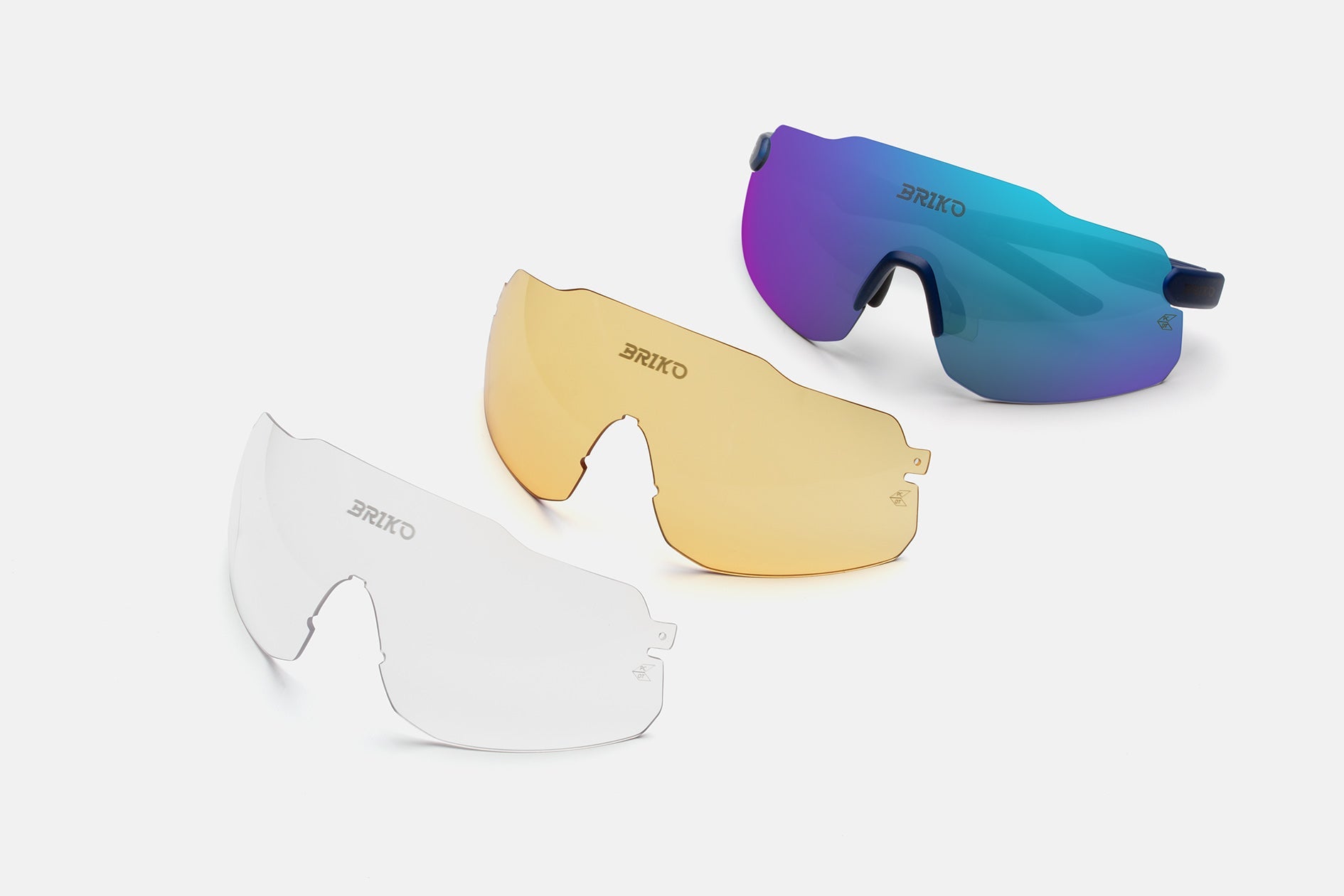 The Starlight comes with 3 interchangeable lenses. Along with the original lens, the box contains a clear lens for protection in dark lighting situations as well as an anti-fog yellow lens during the foggy, cloudy days. These lenses may be rapidly mounted thanks to Briko’s signature snap on/off technology.