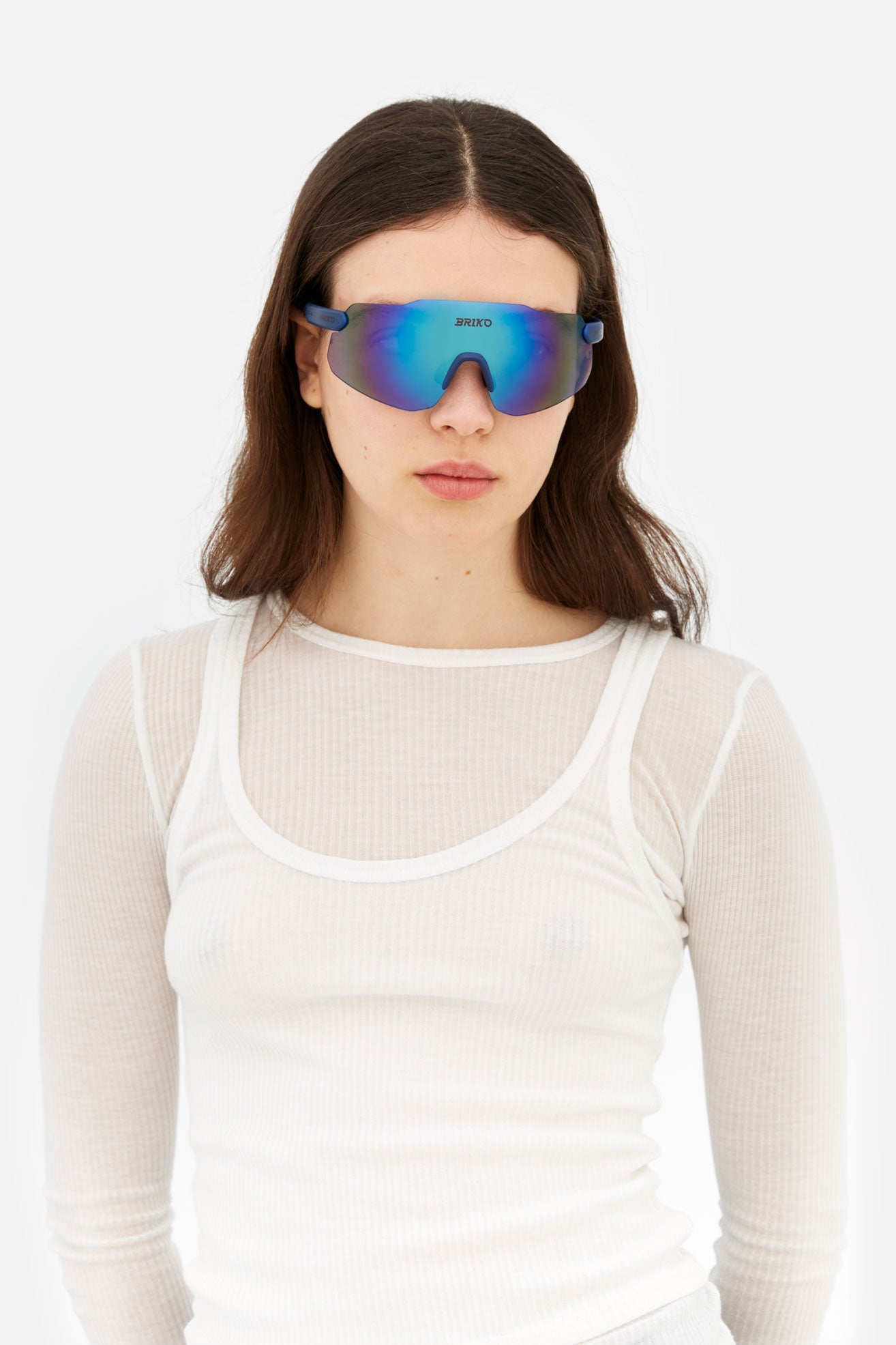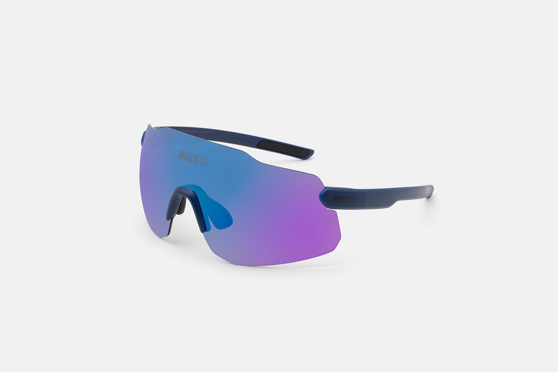 Designed exclusively for Briko, Starlight is an oversized shape characterised by a carefully moulded, wrap-around lens. The silhouette’s high-end performance design features sleek temples with rubberised grips on the tips and comfortable nose-pads conceived for extended active use. The mask-like front has been crafted to offer total coverage without obstructing visibility. This is a shape that matches performance with style. Starlight comes in a tone-on-tone finish with navy frame and matching lenses.