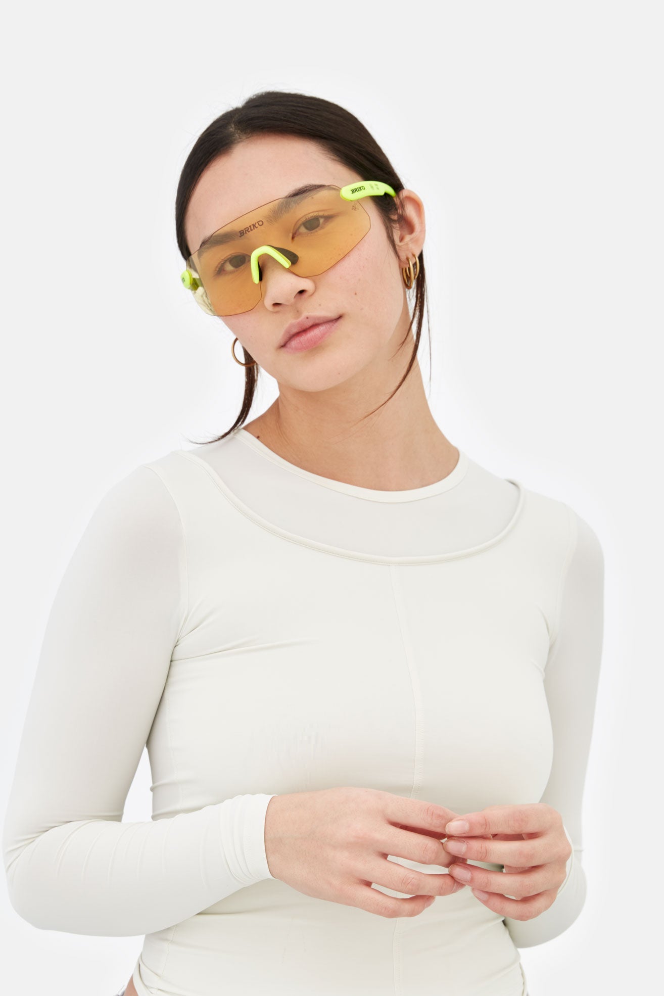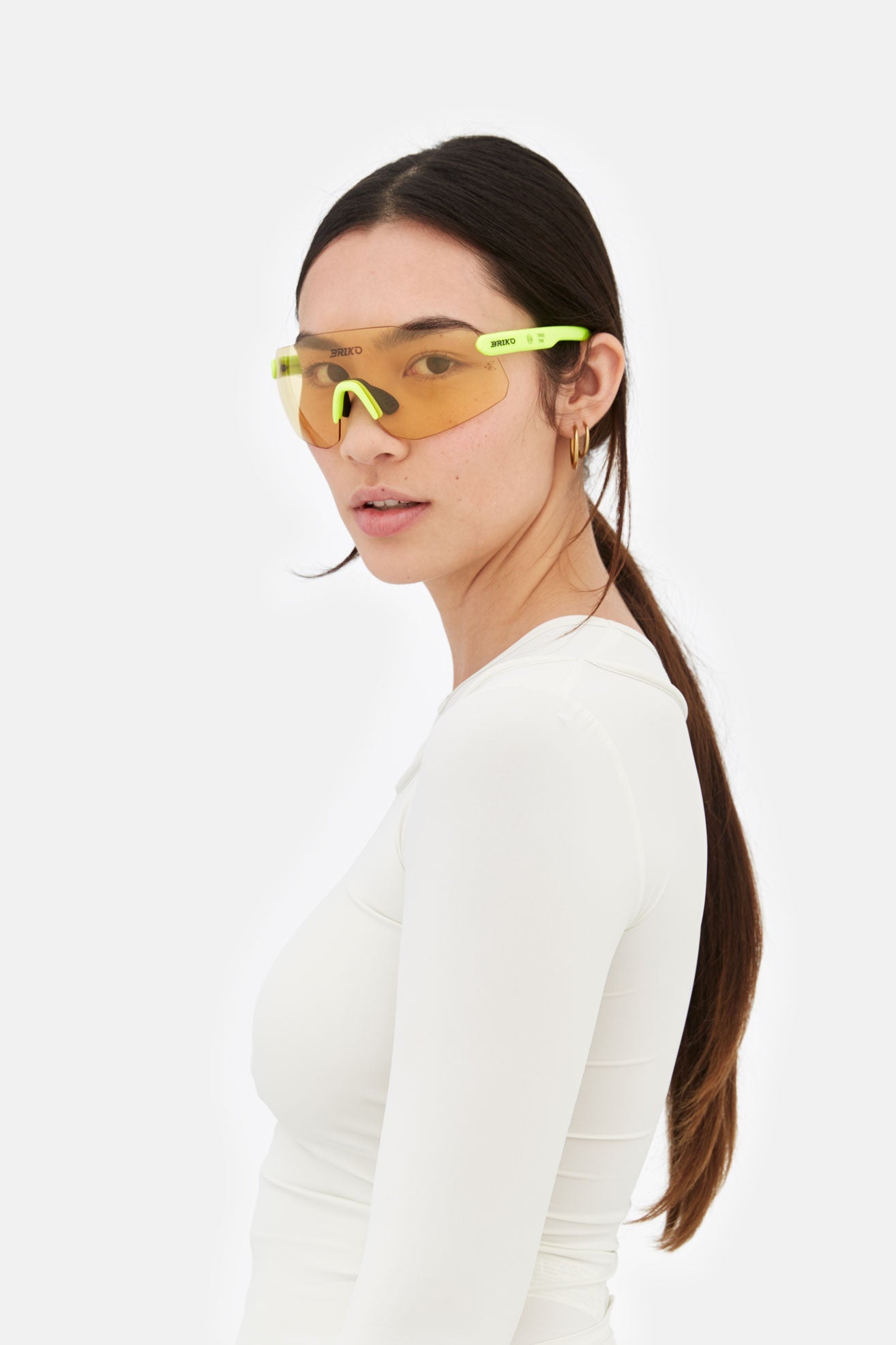 Designed exclusively for Briko, Starlight is an oversized shape characterised by a carefully moulded, wrap-around lens. The silhouette’s high-end performance design features sleek temples with rubberised grips on the tips and comfortable nose-pads conceived for extended active use. The mask-like front has been crafted to offer total coverage without obstructing visibility. This is a shape that matches performance with style. Starlight comes in a lime-green construction with black lenses.