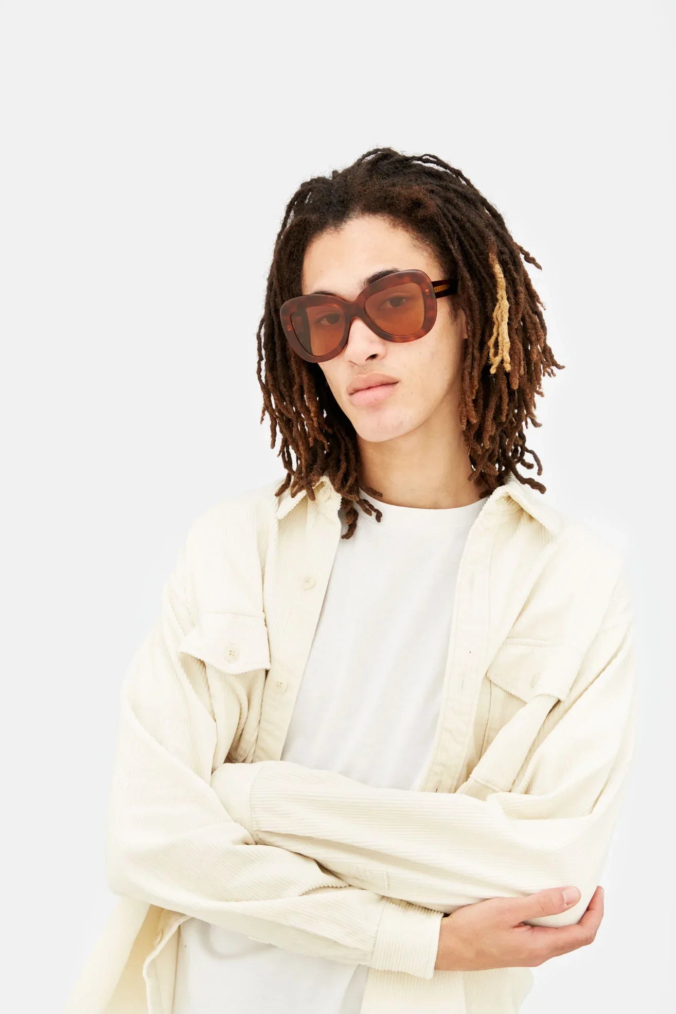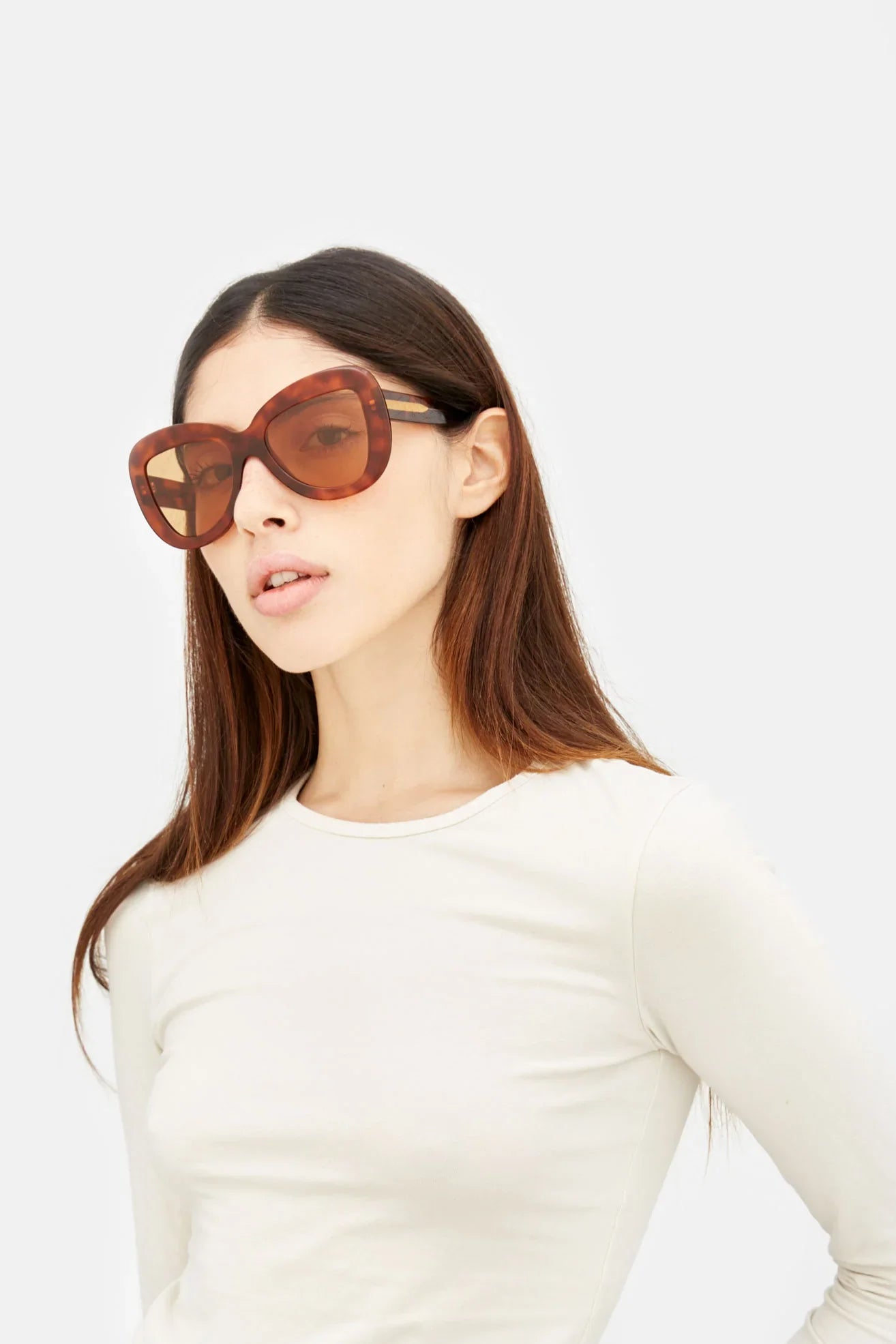 Designed exclusively for Marni, Elephant Island is an all-acetate interpretation of classic aviator silhouettes. The model features thick rims carefully curved on the sides and a sturdy lowered nose-bridge. A metal core with engraved Marni logo is encased on the temples. This version comes in a warm Havana acetate with black lenses.