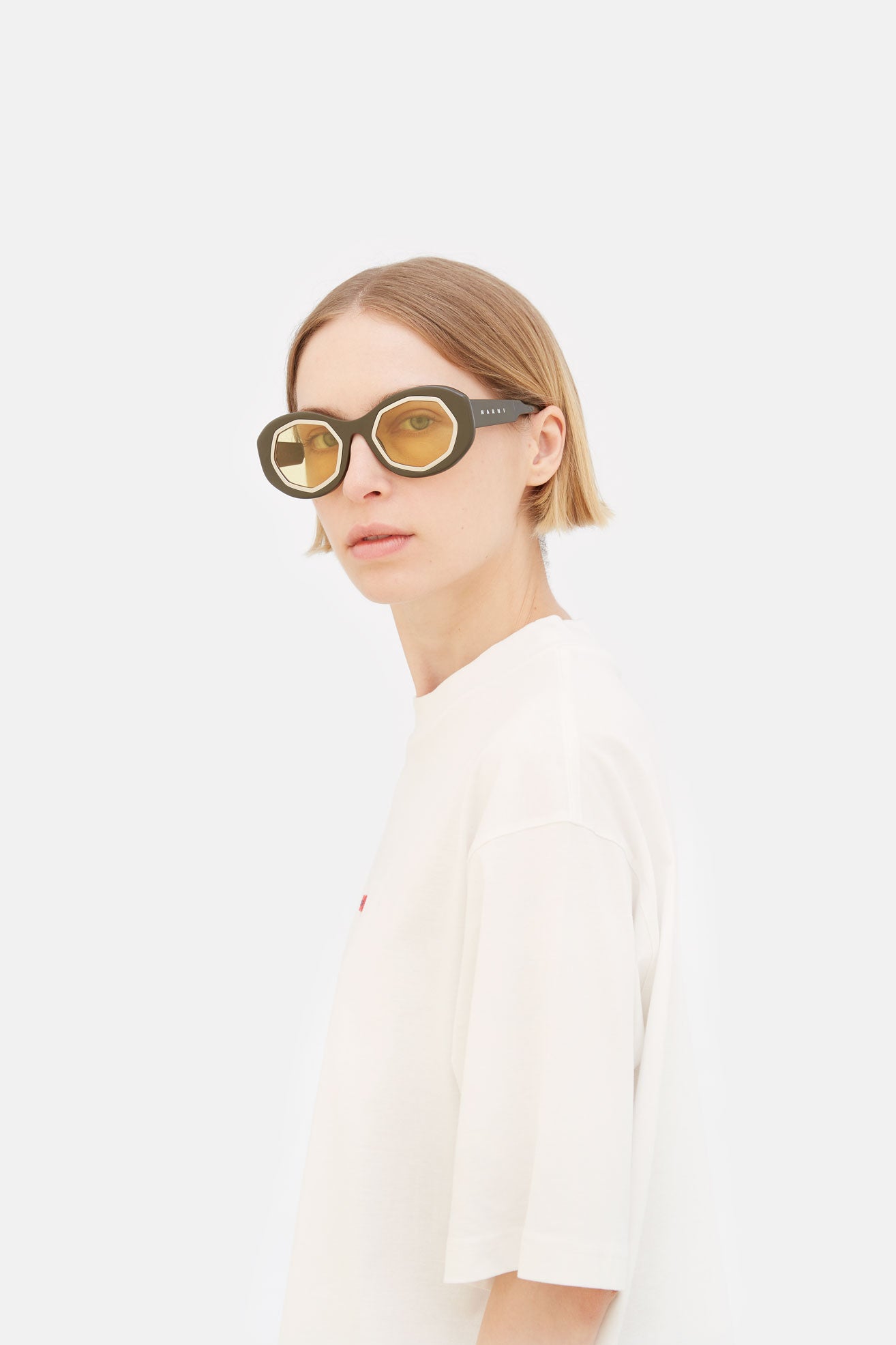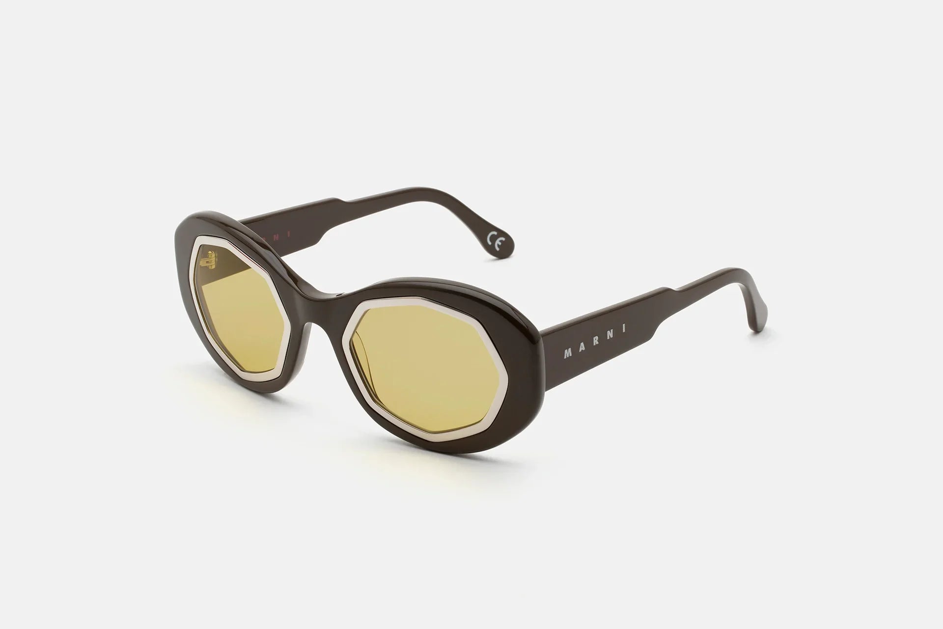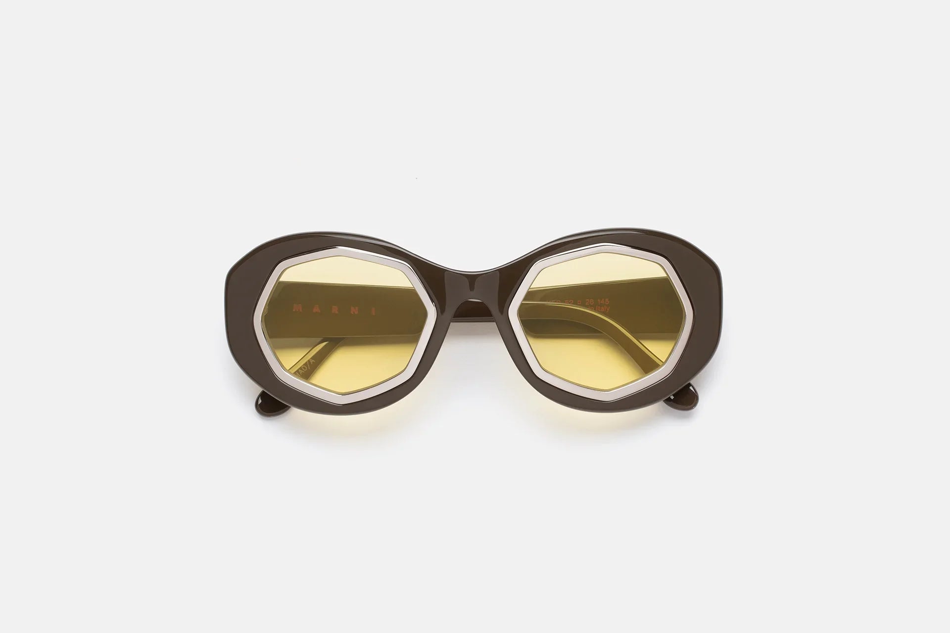 Mount Bromo reinterprets classic oversized frames for a new era. Cutting-edge stylistic references define Mount Bromo’s identity, at the intersection of vintage glamour and grunge chunky shapes. Exceptional craftsmanship elevates Mount Bromo’s design to an artful piece, with rings around the lenses encased within shiny acetate construction. This version features warm-colored acetate and contrasting yellow tinted lenses.