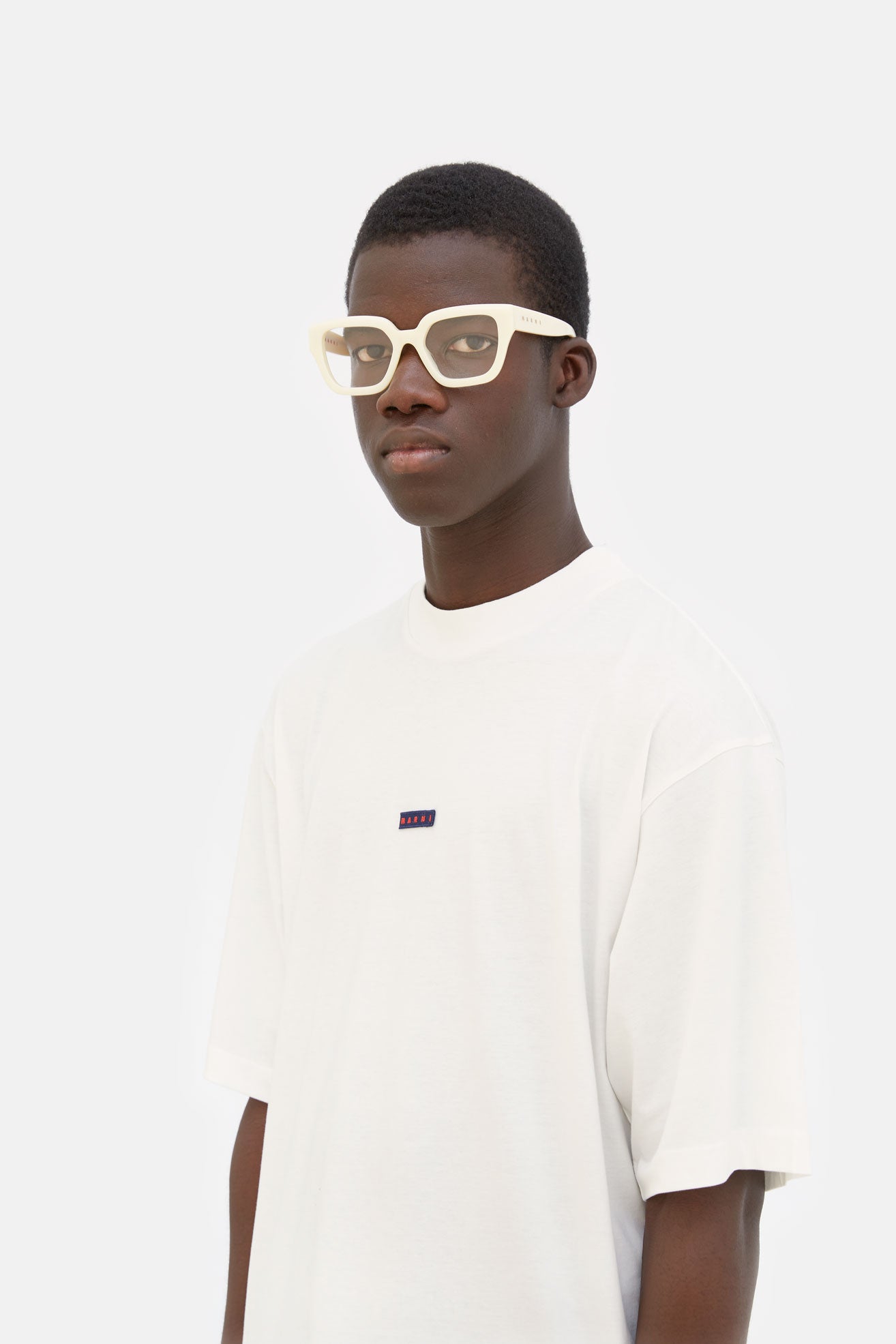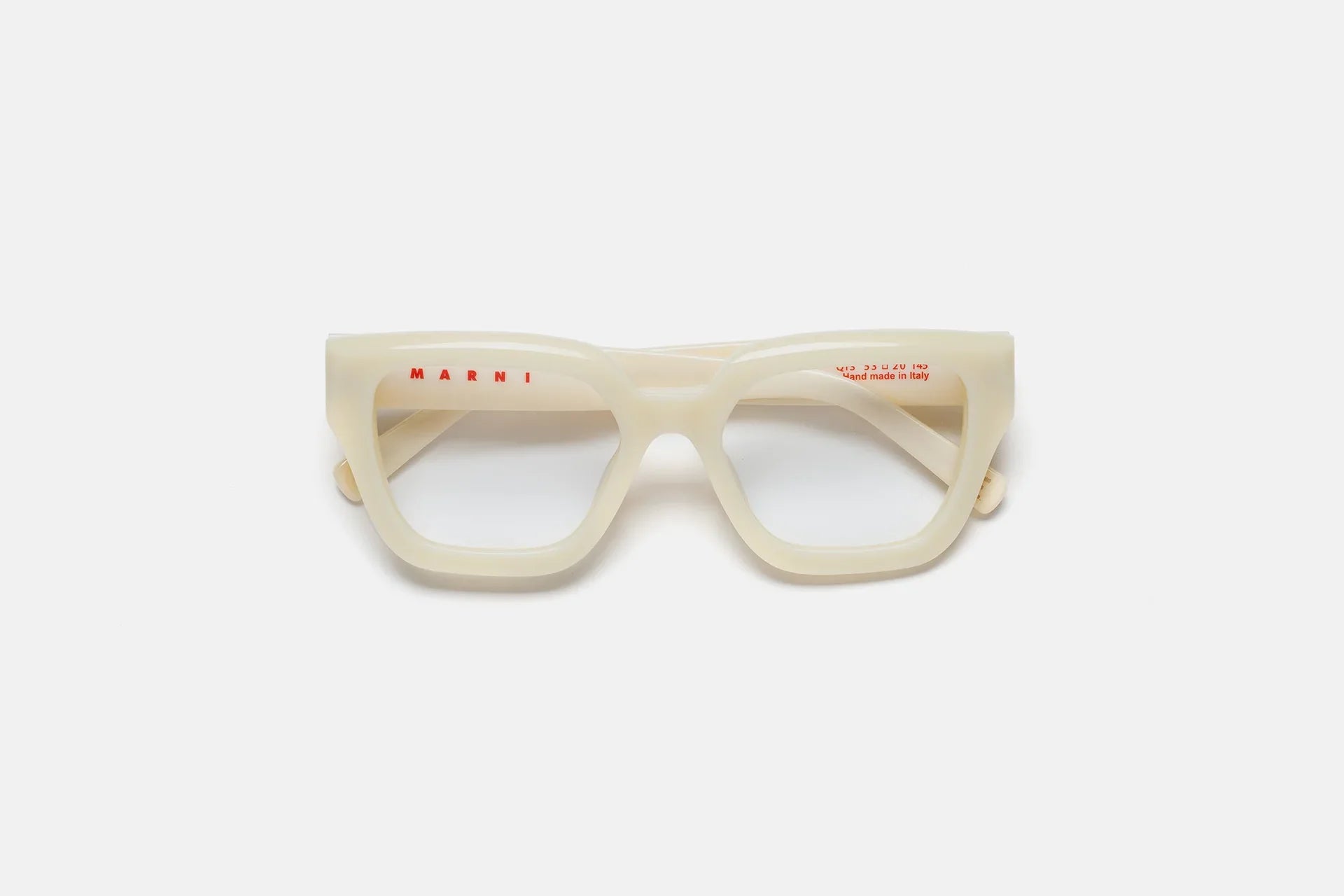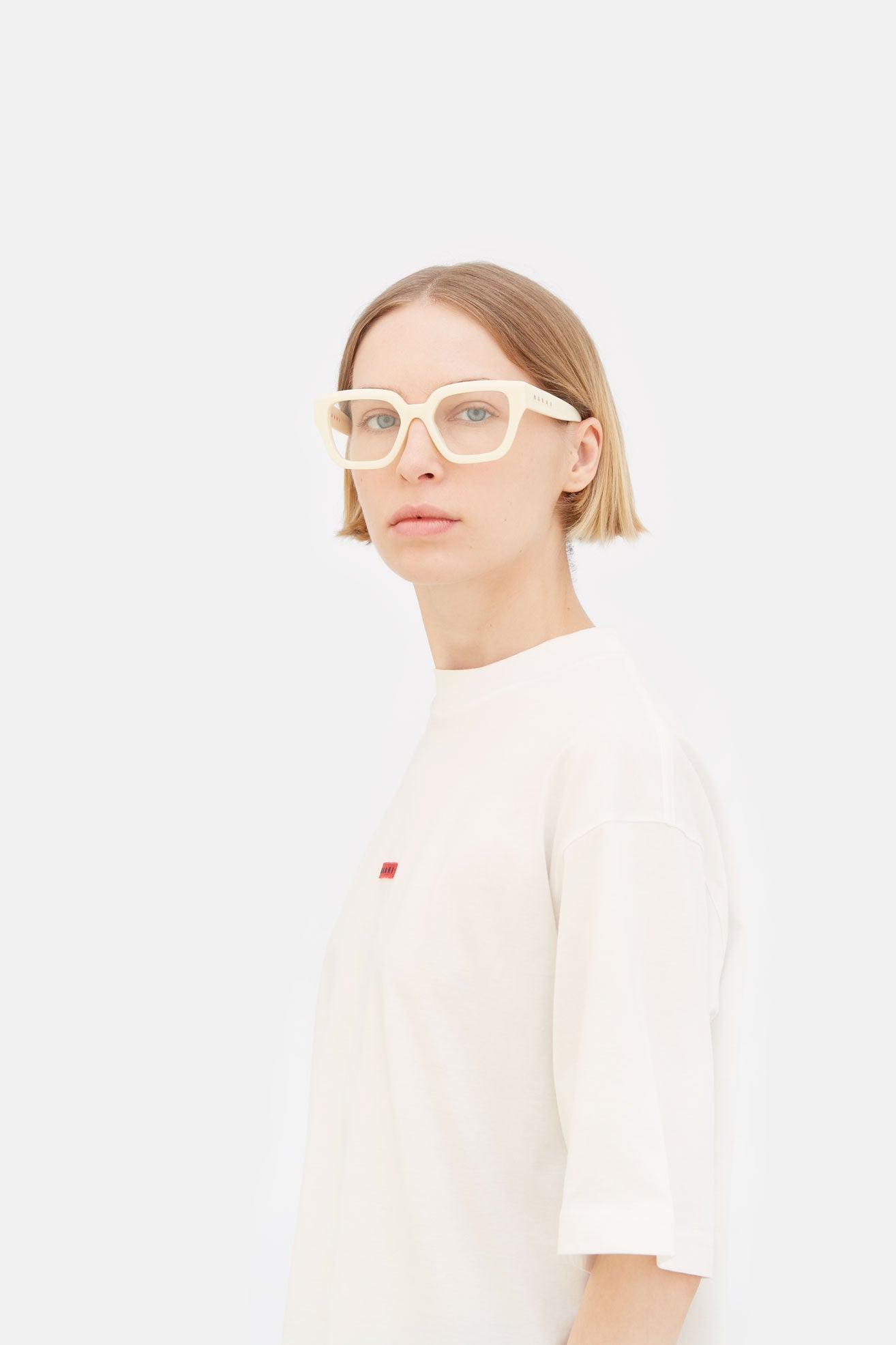 Hallerbos Forest is a unique Optical frame that pushes the limits of eyewear design. Essential, yet unique, these frames capture the essence of Marni’s style, stretching the limits of fitted eyewear and proposing a more playful, oversized version of everyday designs. This squared model features a raised brow-line and deeply set nose-bridge for a sharp profile. It comes in a solid cream acetate.
