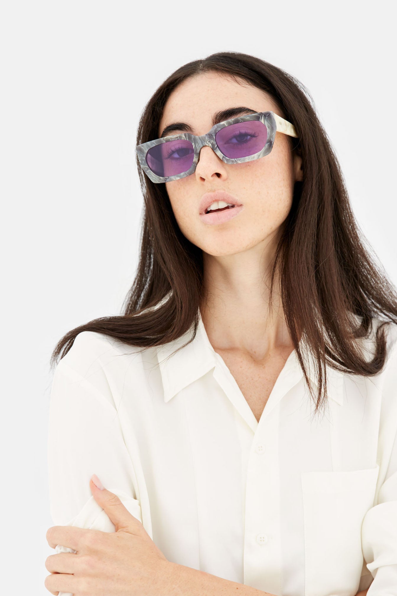 Teddy is a silhouette with a clean-cut and sharp edge. A determined wide frame with thick and bold acetate construction, Matching style with functionality.