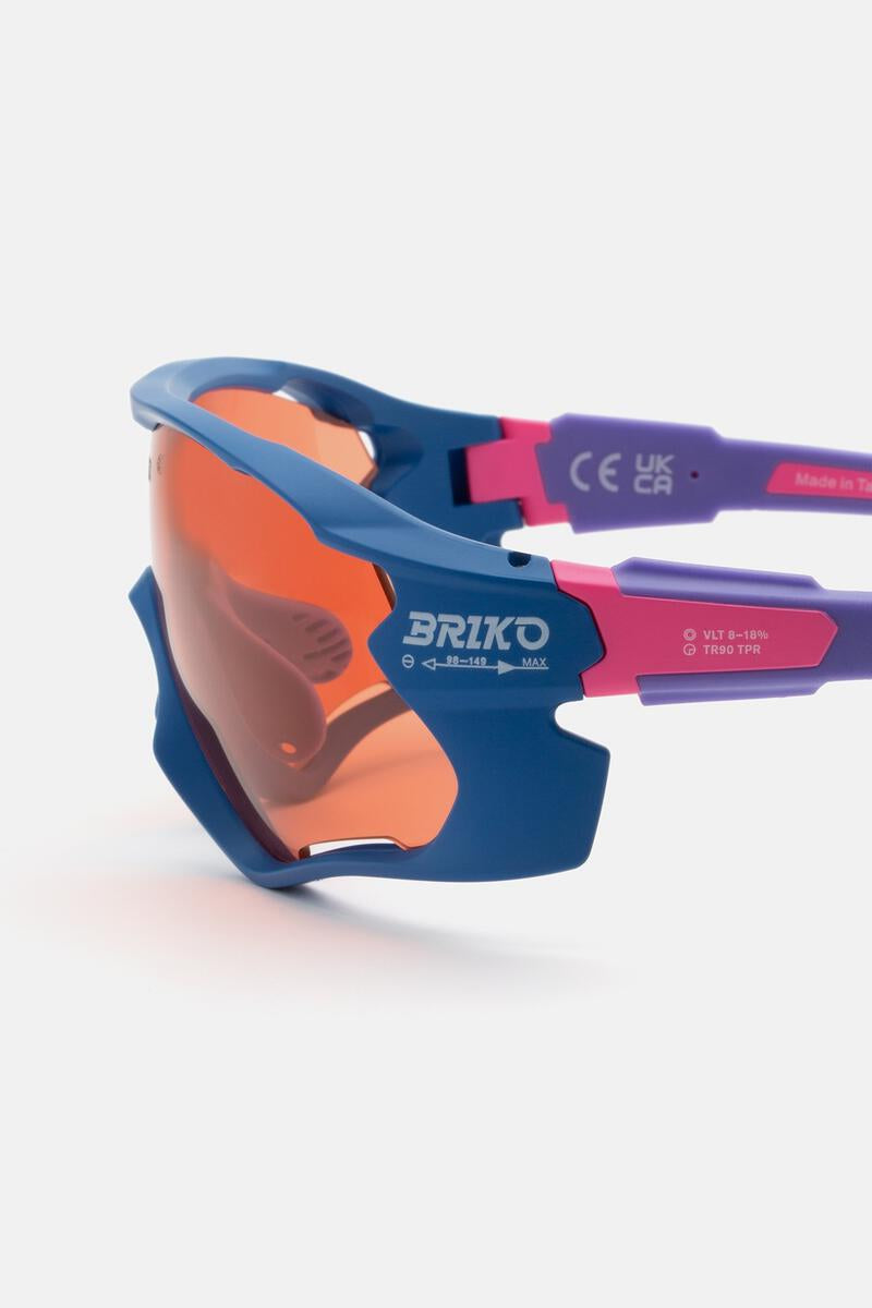 Designed exclusively for Briko, Tongass is a unique sportswear silhouette that draws inspiration from Briko’s 1980s design heritage. The model is a fitted, angular shape crafted from high-end lightweight material for resilience and comfort in use. The shape’s technical detailing, such as perforated slats on the lenses give it a cutting-edge feel. A fusion of style and function, this version of Tongass comes in a deep royal blue finish with dark Bordeaux lens.