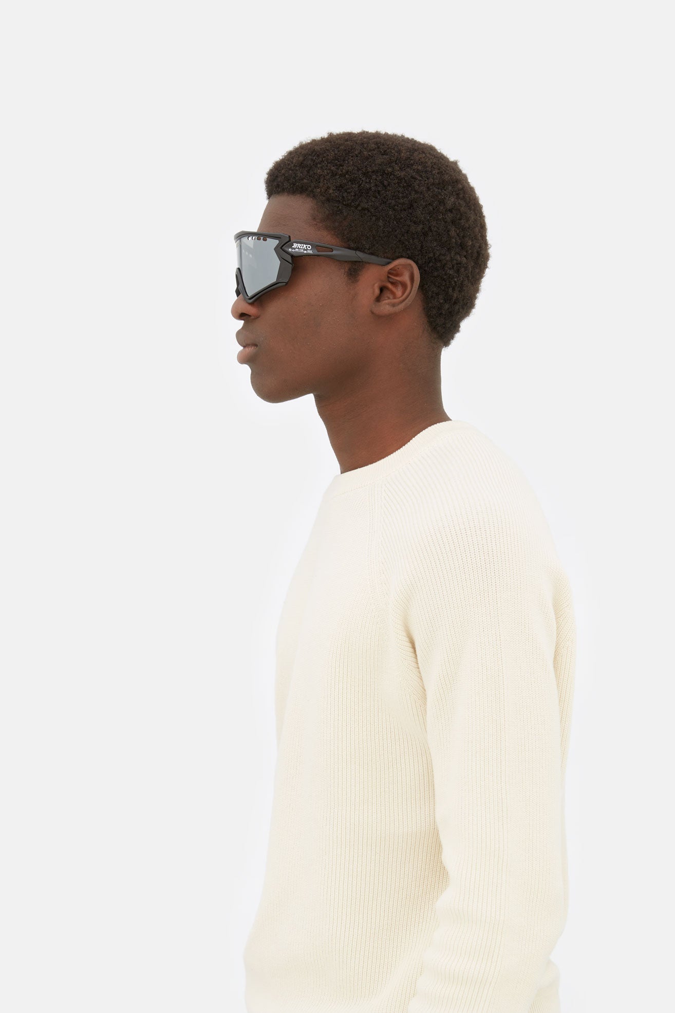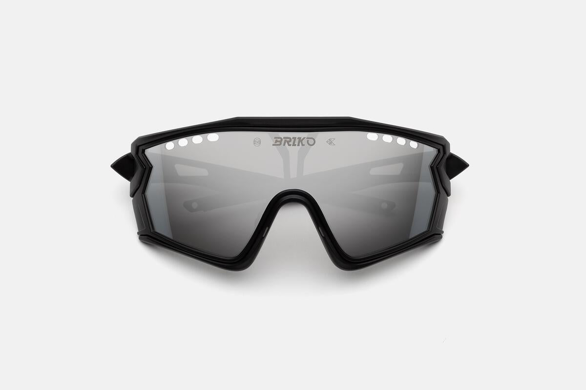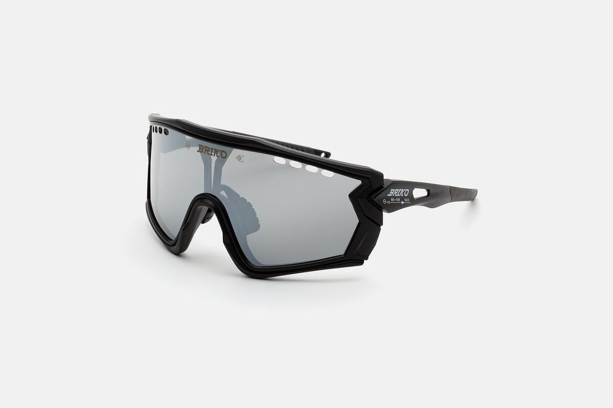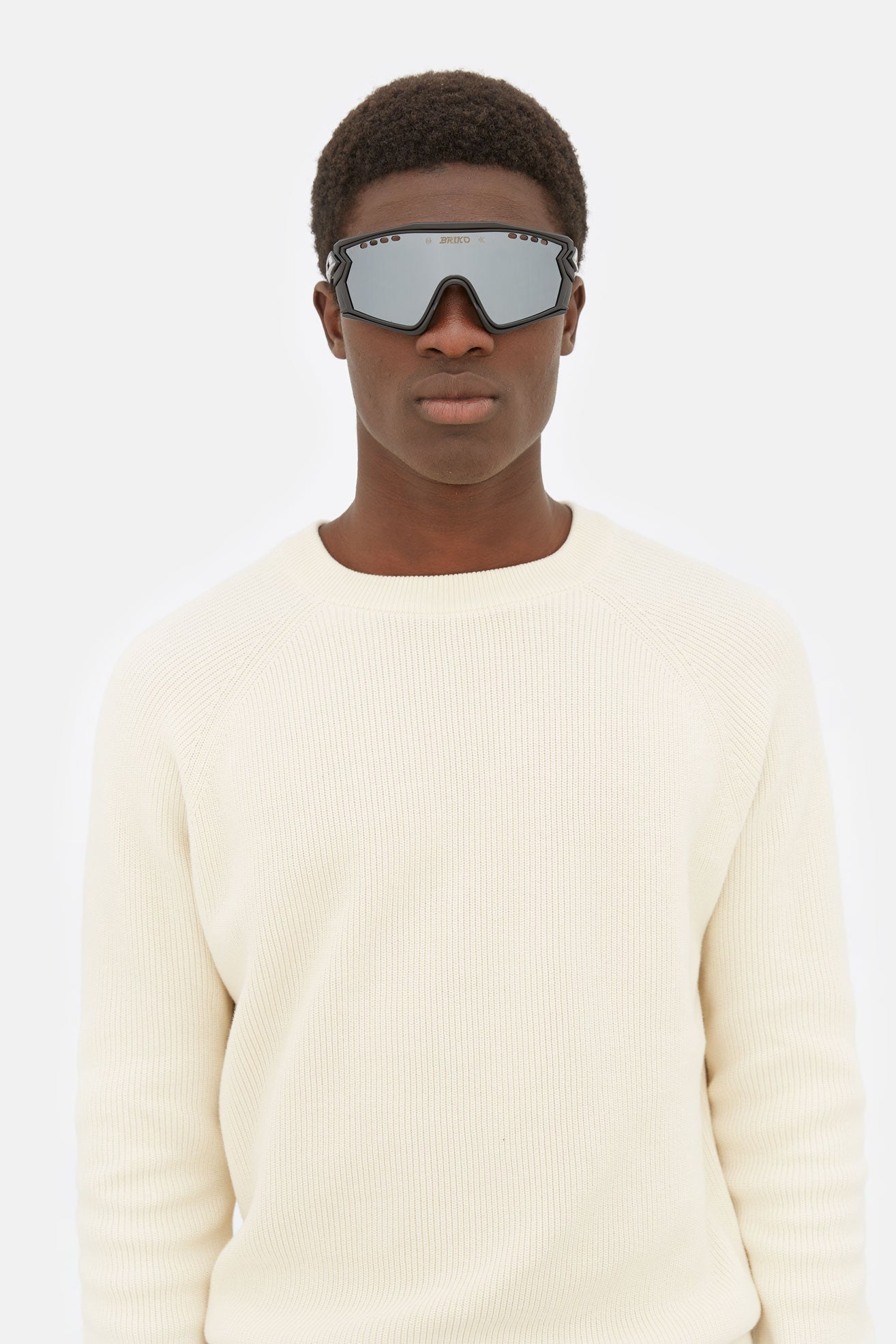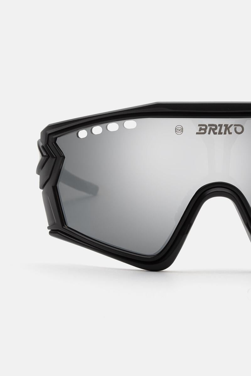 Designed exclusively for Briko, Taiga is an oversized silhouette that matches high-tech performance with elegant contemporary style. The model updates Briko’s iconic design heritage with a structured geometric shape characterised by pointed lenses. The oversized lens design is counterbalanced by lightweight rims and temples, that ensure the perfect fit in use. This performative yet statement design comes in a sleek black matt finish with grey lens.