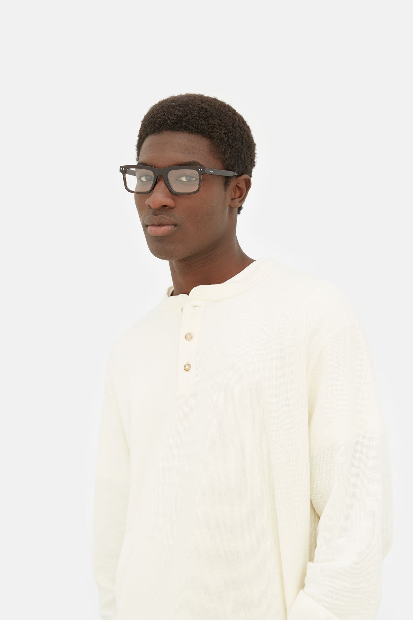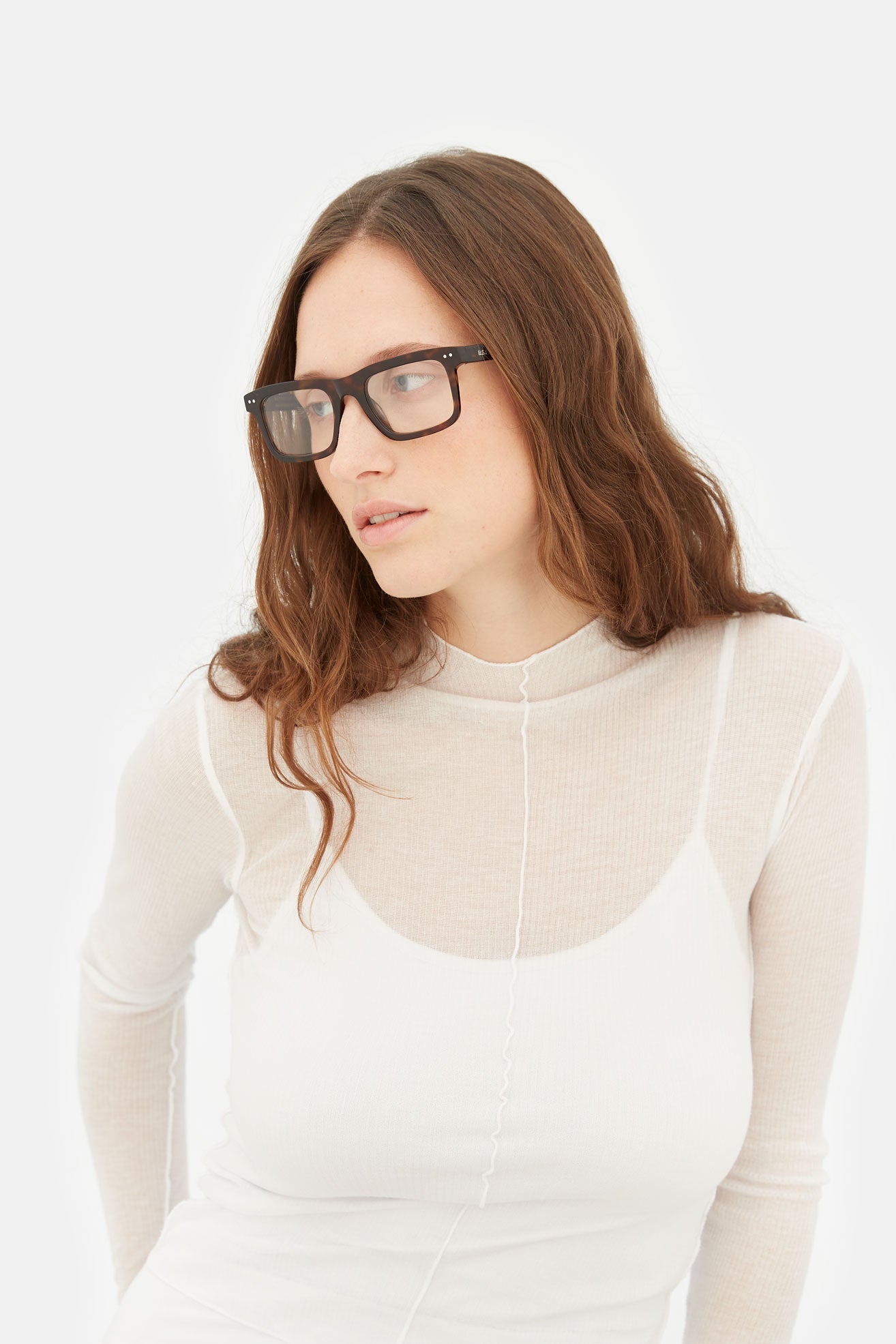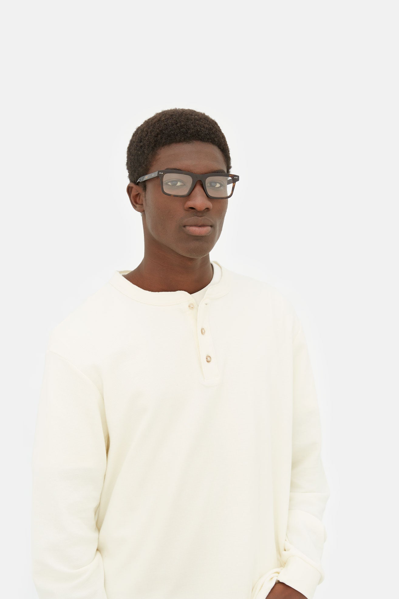 Numero 101 is an essential angular silhouette that remixes classic geometric frames from the 1950s in a contemporary language. With its thick nose-bridge and marked brow-line, this model captures the sharp, hard-edged aesthetics of mid-century design, adapting it for more fluid contemporary use. Numero 101 is unobtrusive and lightweight for an all-day-everyday use, while underlining a marked stylistic vision. This version comes in a vibrant 3627 Havana acetate.