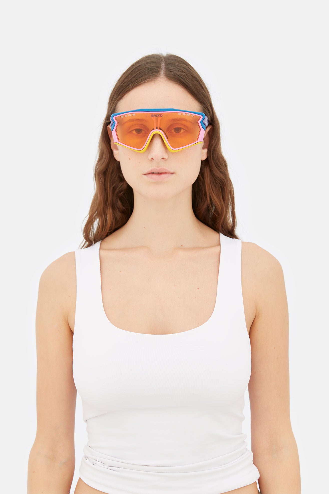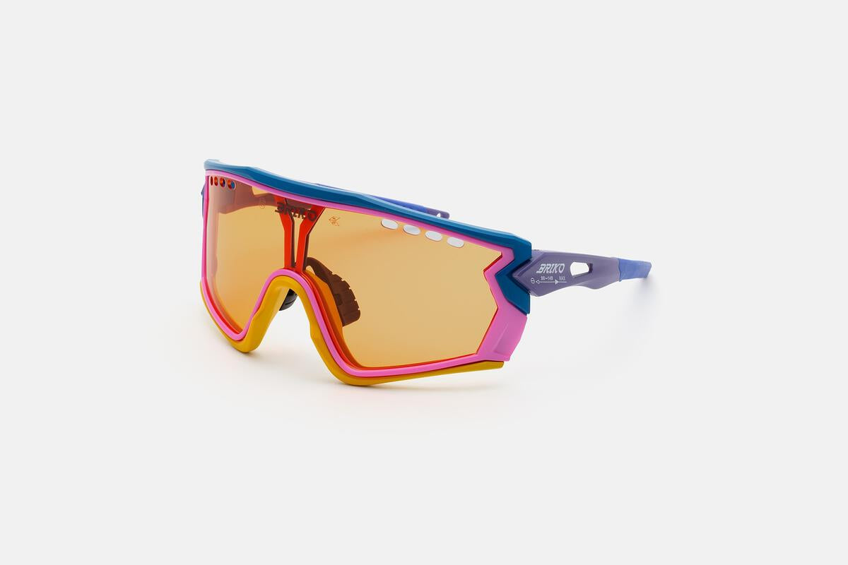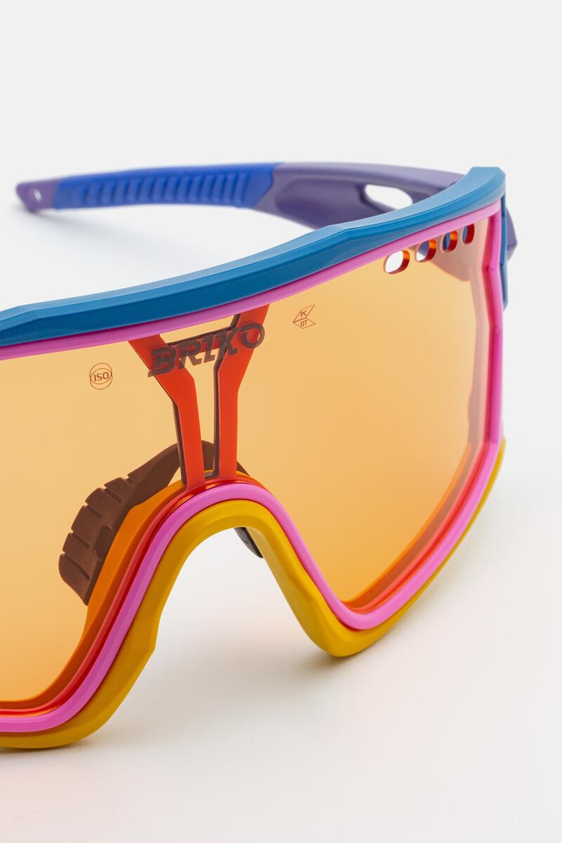 Designed exclusively for Briko, Taiga is an oversized silhouette that matches high-tech performance with elegant contemporary style. The model updates Briko’s iconic design heritage with a structured geometric shape characterised by pointed lenses. The oversized lens design is counterbalanced by lightweight rims and temples, that ensure the perfect fit in use. This performative yet statement design comes in a vibrant multicolour finish with orange lens.