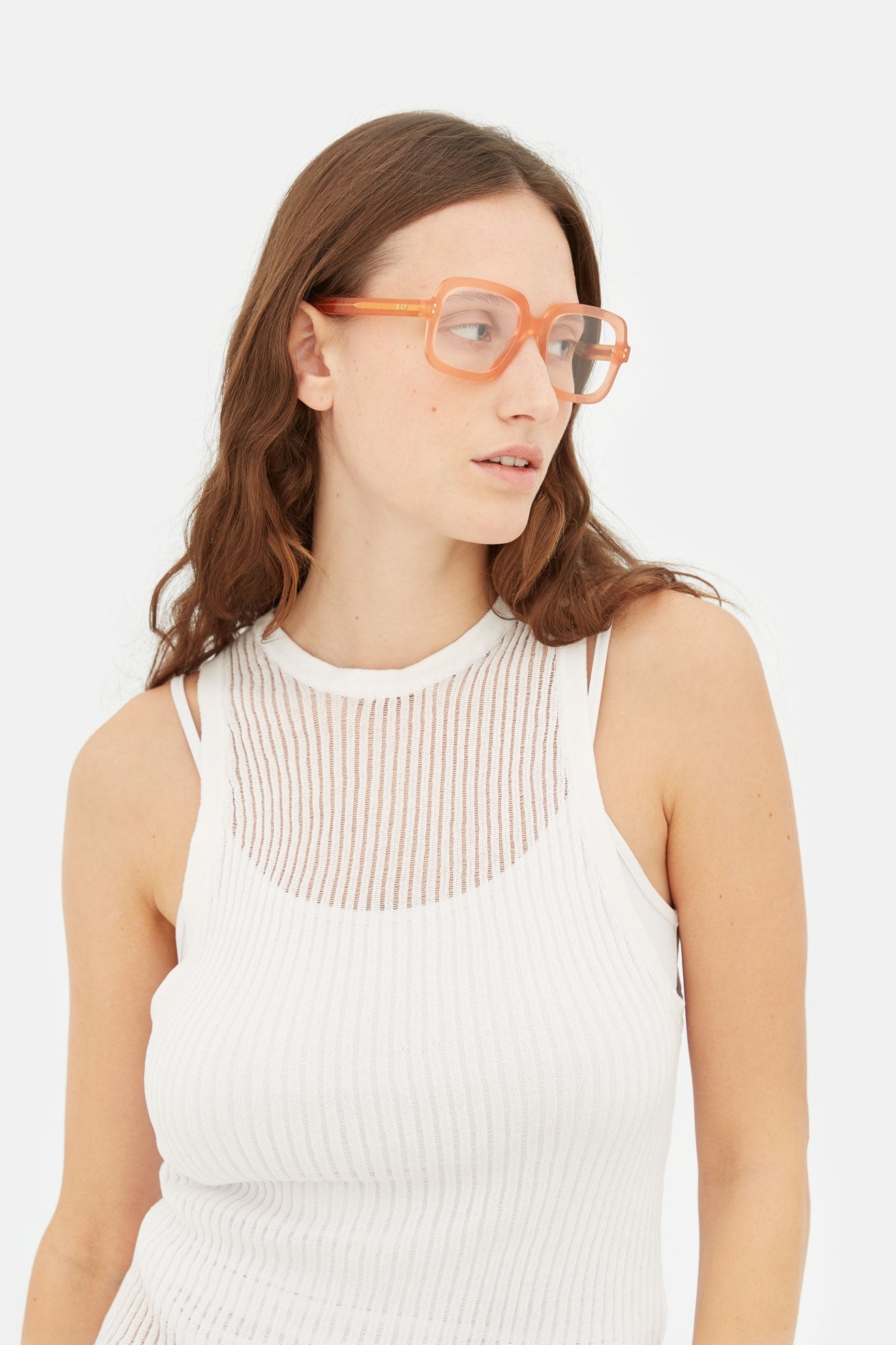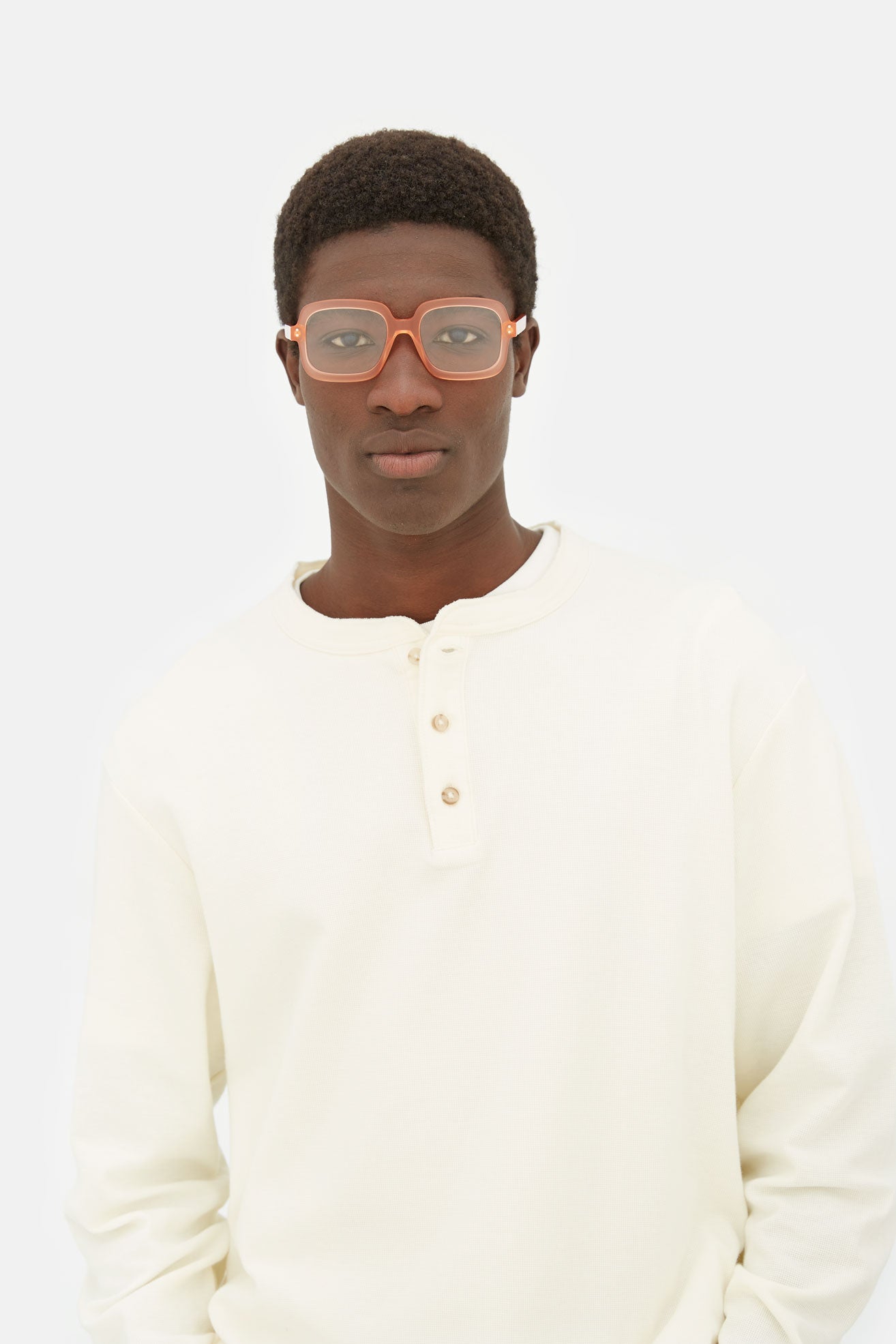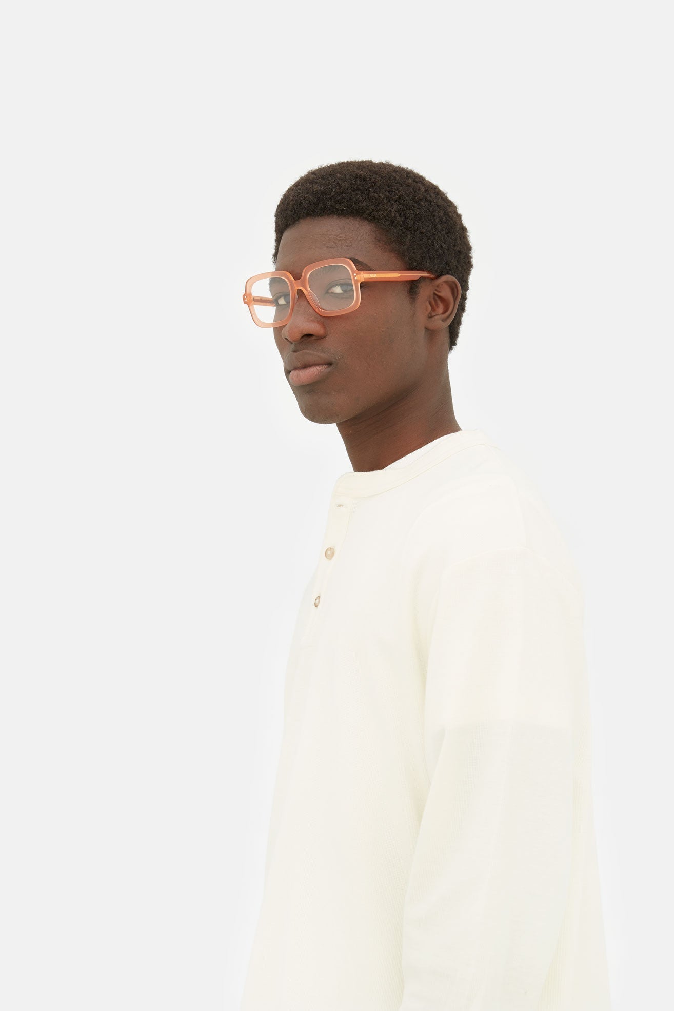 Celebrating edgy and playful oversized 70s designs for everyday optical frames, Numero 103 captures the glamour and style of the disco decade, adapting it for a modern vision. This squared, oversized model features thick acetate rims that have been further sculpted for lightness and functionality in daily use. Numero 103 is designed for those looking to stand out in the busy landscape. This version comes in an unexpected rusty colored acetate.
