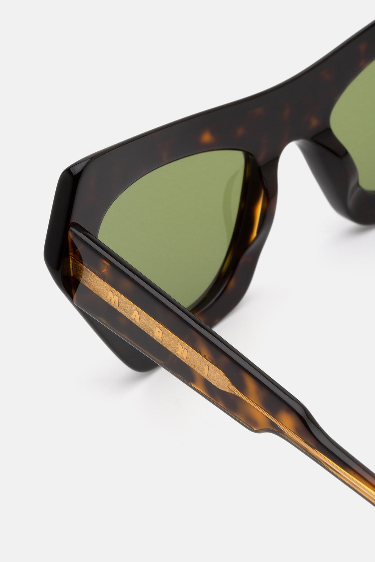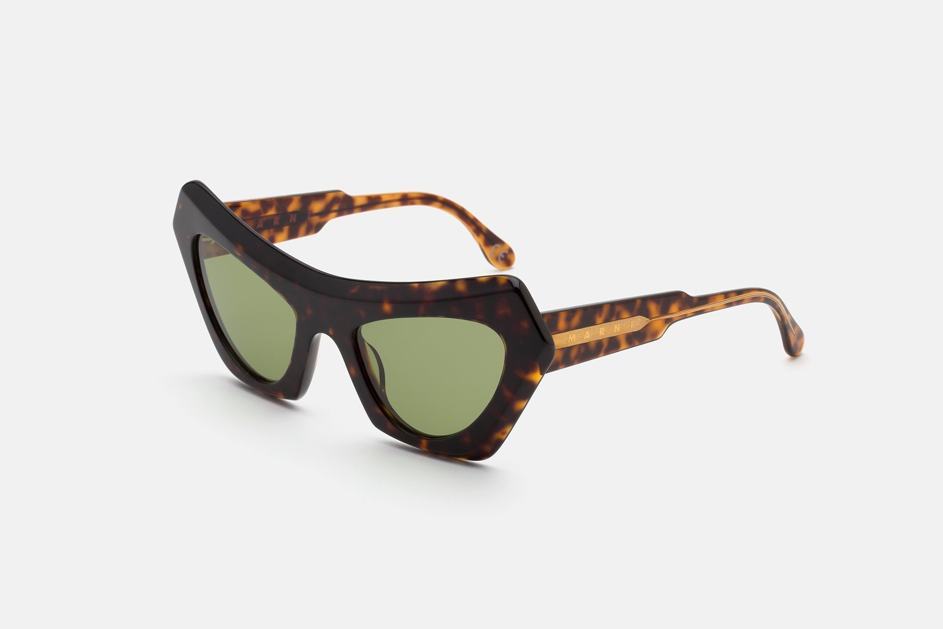 Devil's Pool is a stand-out contemporary silhouette designed exclusively for Marni. Drawing on the brand's exceptional heritage, the model features a quirky, oversized shape with a thick curved brow-piece crafted for a different take on classic cat-eye shapes. Its thick acetate construction elevates the unconventional personal style while celebrating Italian luxury craftsmanship. This version comes in a rich Havana acetate with bottle green lenses.