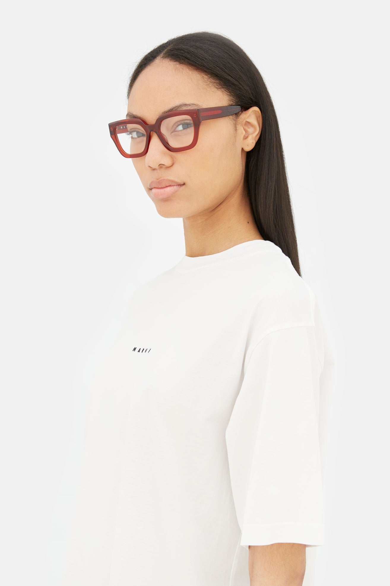 Hallerbos Forest is a unique Optical frame that pushes the limits of eyewear design. Essential, yet unique, these frames capture the essence of Marni’s style, stretching the limits of fitted eyewear and proposing a more playful, oversized version of everyday designs. This model features a raised brow-line and deeply set nose-bridge for a sharp profile. It comes in a rich burgundy finish.
