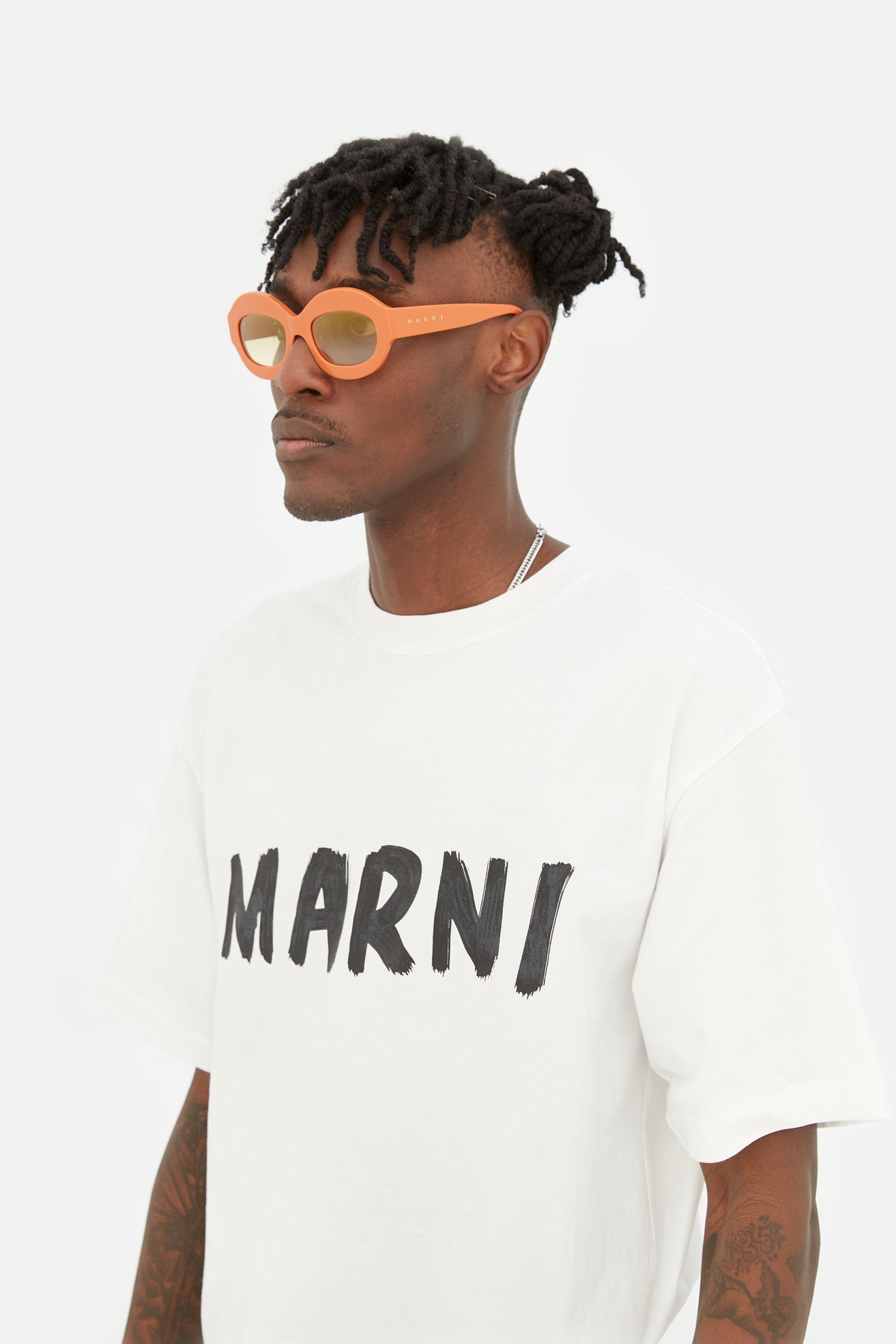 Designed exclusively for Marni, this is an oversized shape characterised by bold acetate construction and an iconic rounded geometry. Inspired by playful vintage designs, Ik Kil Cenote pushes the boundaries of contemporary eyewear with its exceptionally chunky rims encasing oval lenses to form a distinctive rounded form. This is a forward-looking piece of eyewear for those open to experimenting with style. The model comes with a bright orange acetate and soft orange tinted lenses.