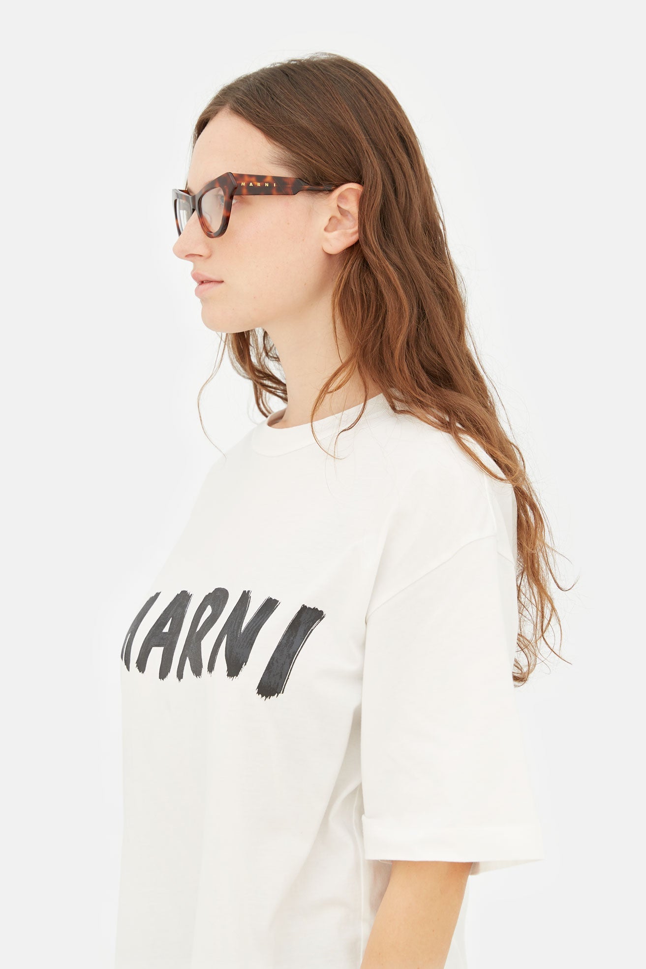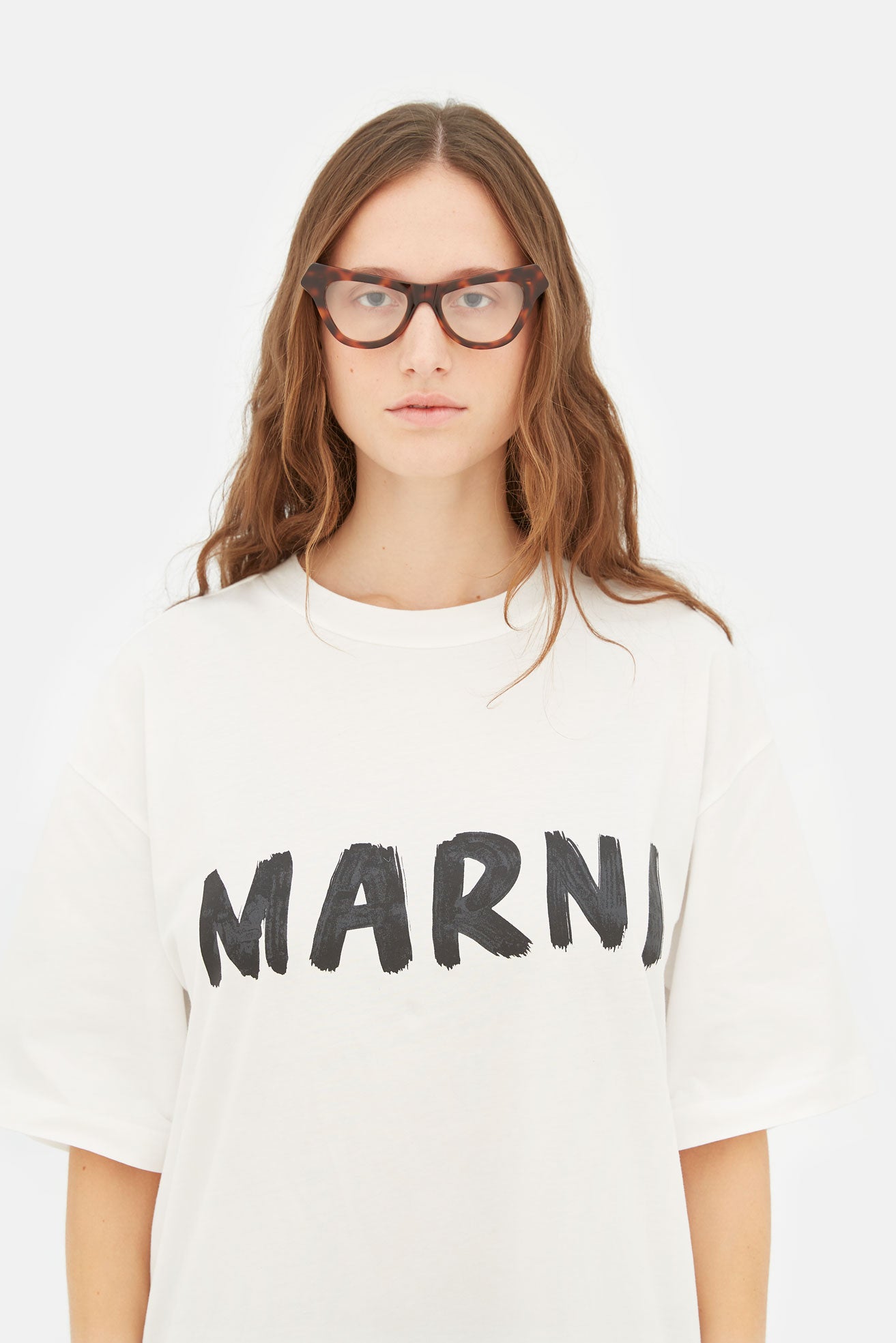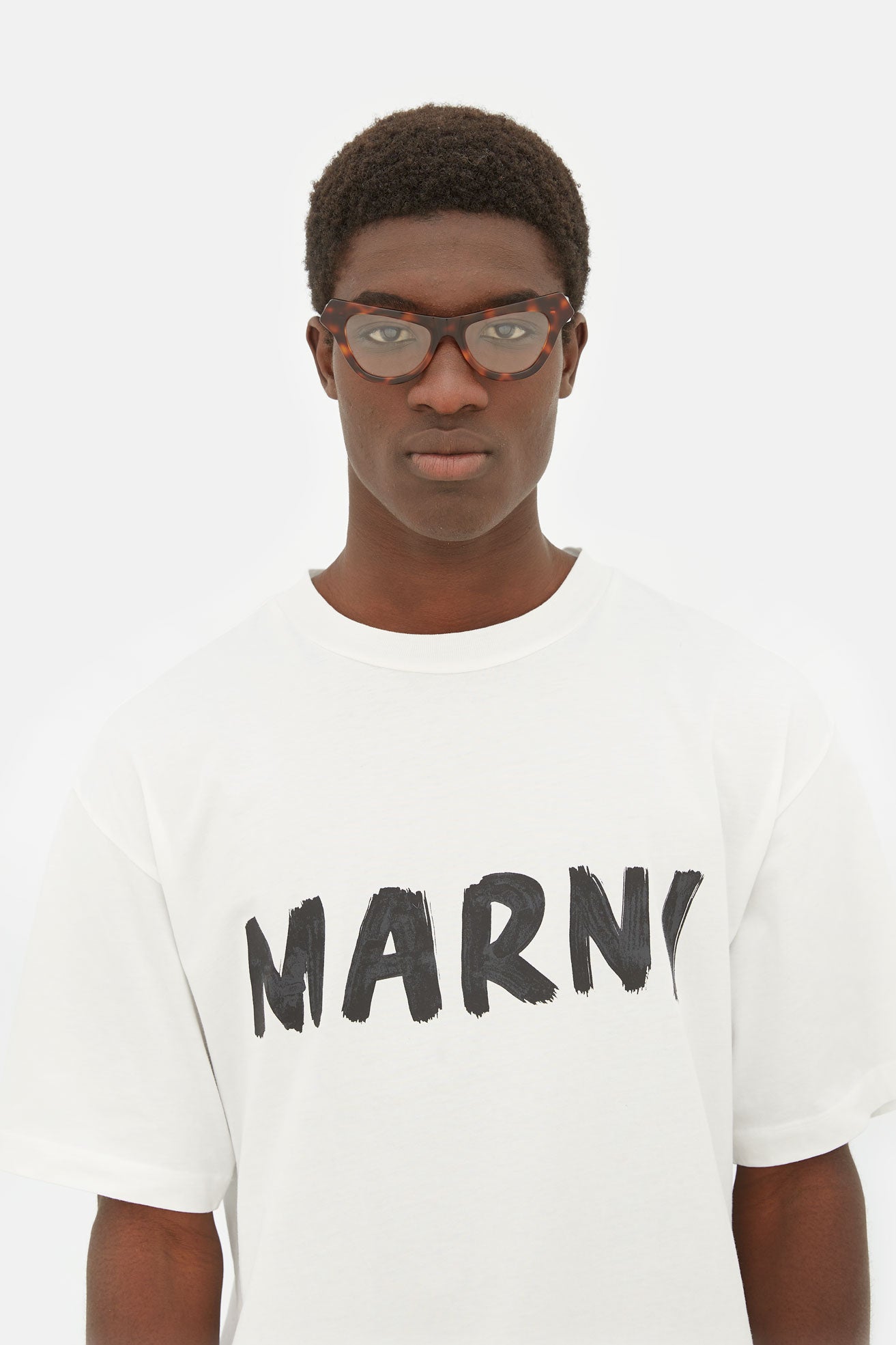 Designed exclusively for Marni, Jeju Island is a bold Optical frame characterised by a chunky acetate construction and sculpted rims. The model is a unique reinterpretation of cat-eye shapes, with triangular lenses and a pointed front. The unique v-shaped browline is matched by softly curved lenses. This version features a Havana acetate.