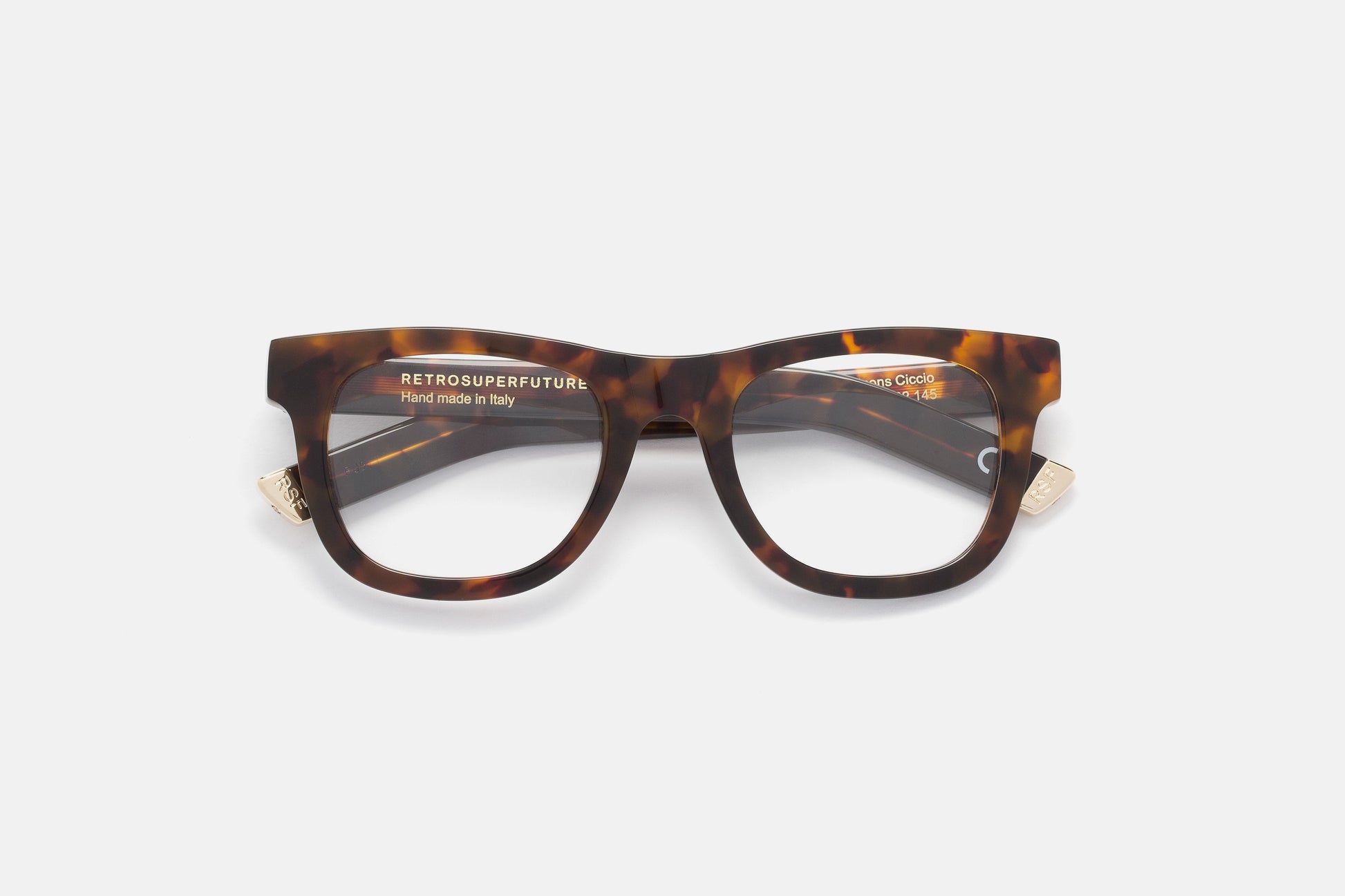 Redesigned for Fall/Winter 2016 collection, Ciccio Classic Havana Optical was carefully adapted for an extended everyday use from the brand’s collection of SUPER by RETROSUPERFUTURE sunglasses. The model’s visually heavy structure is made from the most lightweight yet resilient acetate in warm Havana. Prescription lenses not included. The box contains a hard case and a cleaning cloth.