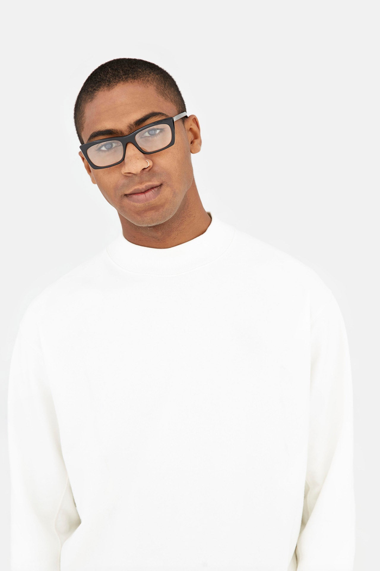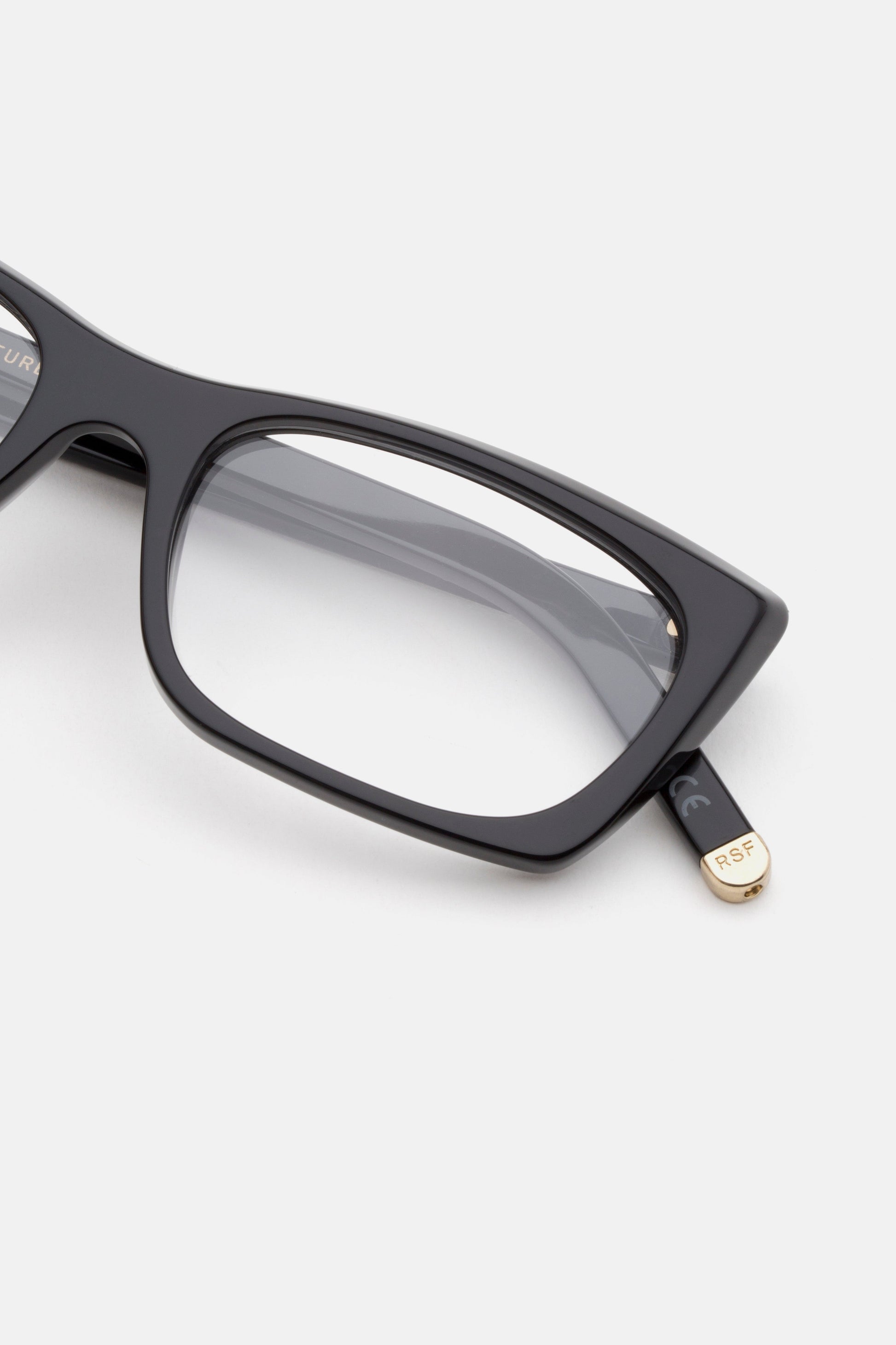 Fred is a bold optical frame characterized by sharp rims and sturdyacetate construction. An adaptation of a popular RSF silhouette, this model was designed for an all-day use, with rims carefully moulded for lightness and subtle metal detailing. This versionmountsa vividred acetate. Prescription lenses not included.