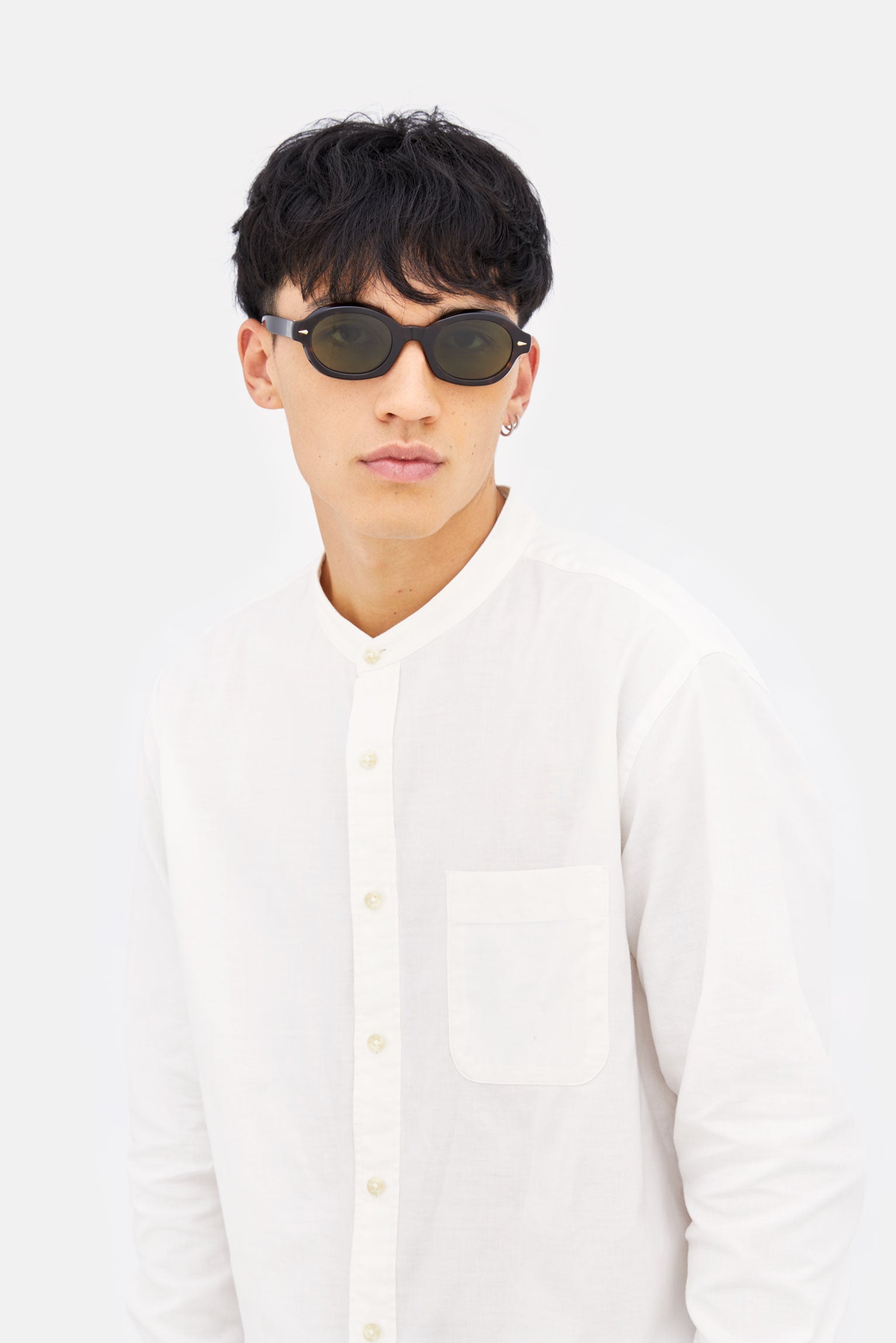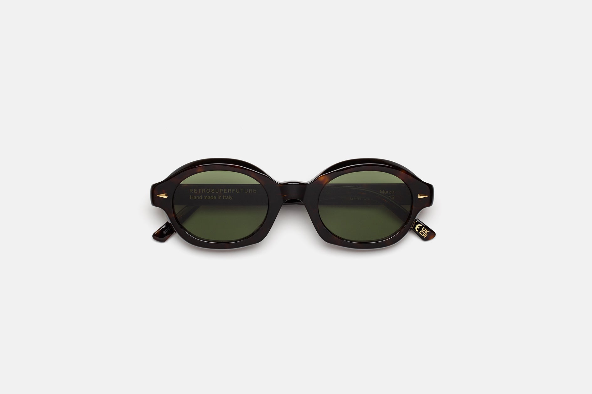 Oval and compact, Marzo is an exciting silhouette in RSF’s roster. Characterized by chunky acetate rims, a signature RSF feature, the model draws inspiration from 1960s shapes, with its low, protruding temple tips and oval lenses. With hand-crafted decors and sleek temples, this is a fresh take on casual everyday sunglasses. This version comes in a vibrant 3627 Havana acetate with bottle green lenses and gold decors.