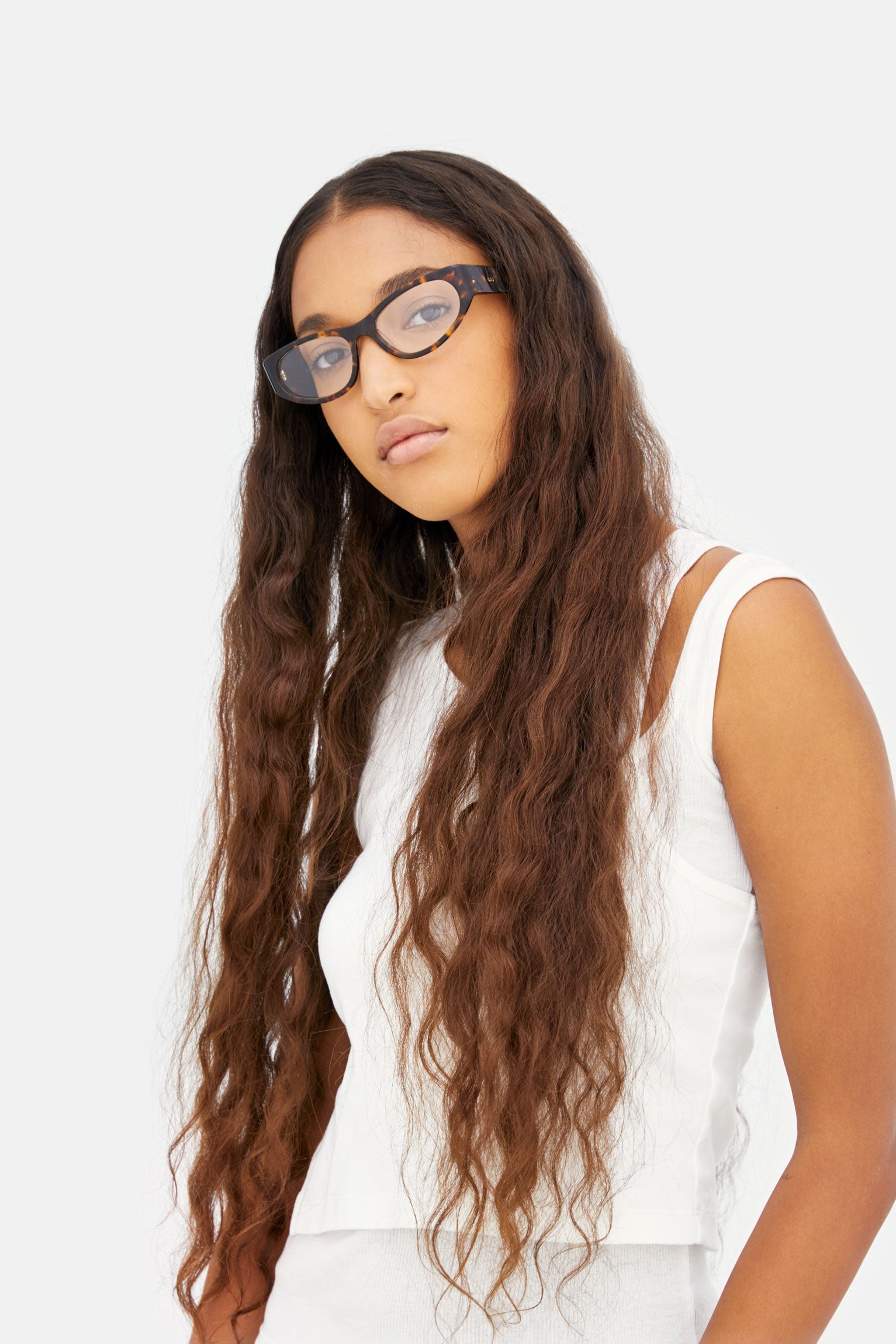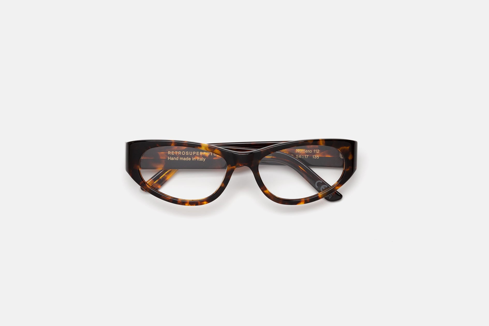Numero 112 is an eclectic contemporary frame designed as a crossover between iconic cat-eye shapes and streamlined sportswear pieces. Characterised by a sturdy, compact acetate construction and a slanted profile, Numero 112 features wrap-around temple tips and thick temples. With its bold character and distinctive street edge, Numero 112 redefines everyday eyewear. This is a stand-out RSF Optical silhouette that comes in a deep smoky Havana acetate.
