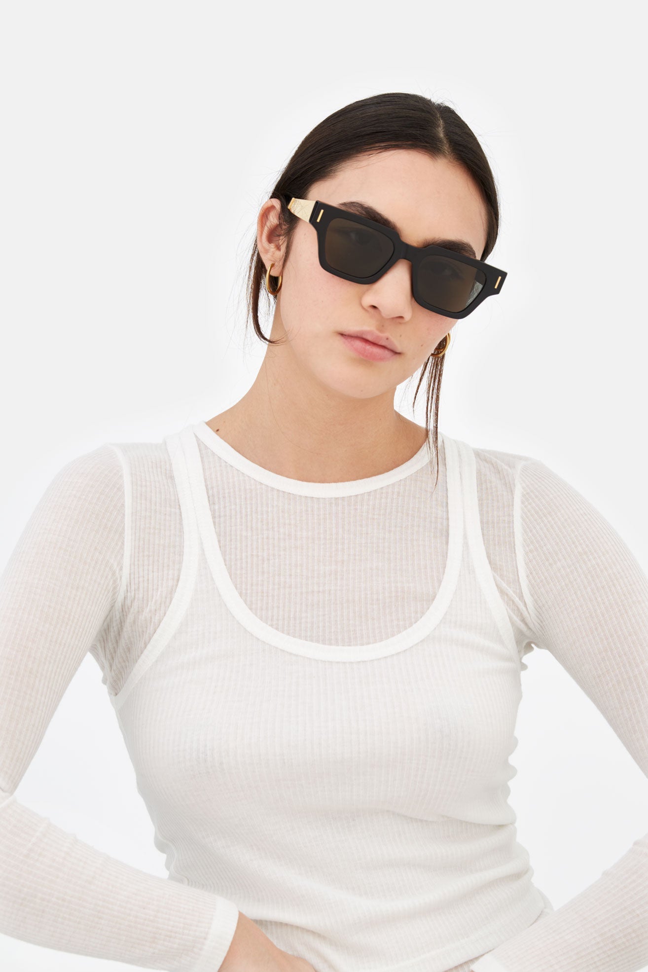 Ten years after it was first released, RSF celebrates its iconic Francis series of eyewear. This fresh version of the Storia receives the bling treatment in honour of its anniversary, which pairs a sturdy metal temple to the frame’s thick acetate construction, has been applied to Storia’s sleek geometric design. The result is a high-end yet wearable everyday piece of eyewear. This version comes with black acetate and lenses and shiny gold metal finish. RSF’s X logo is inscribed in the temples, celebrating the 10 years of the Francis design.