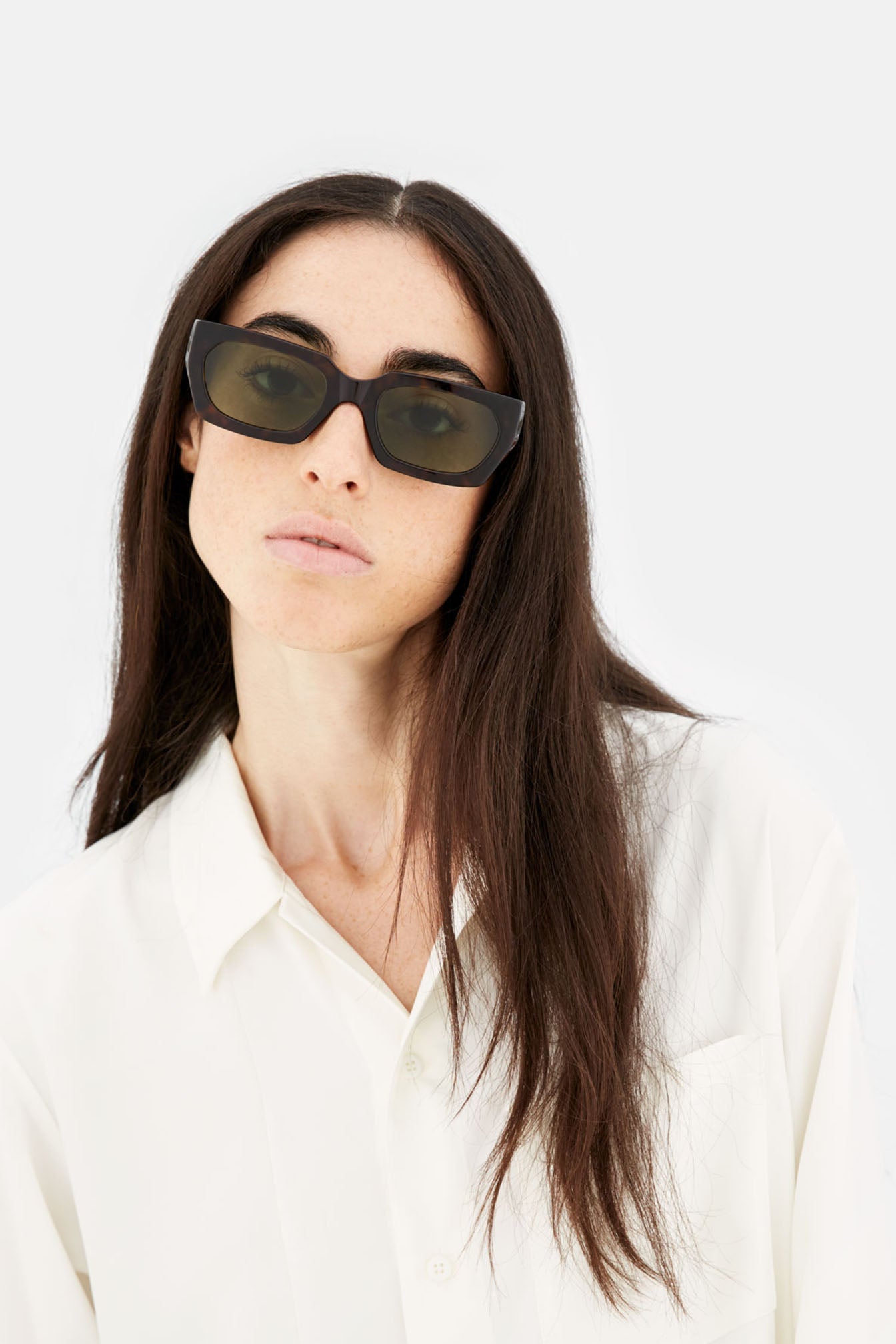 Teddy is a silhouette with a clean-cut and sharp edge. A determined wide frame with thick and bold acetate construction, Matching style with functionality. This model comes with a dark Havana acetate and bottle green lenses.