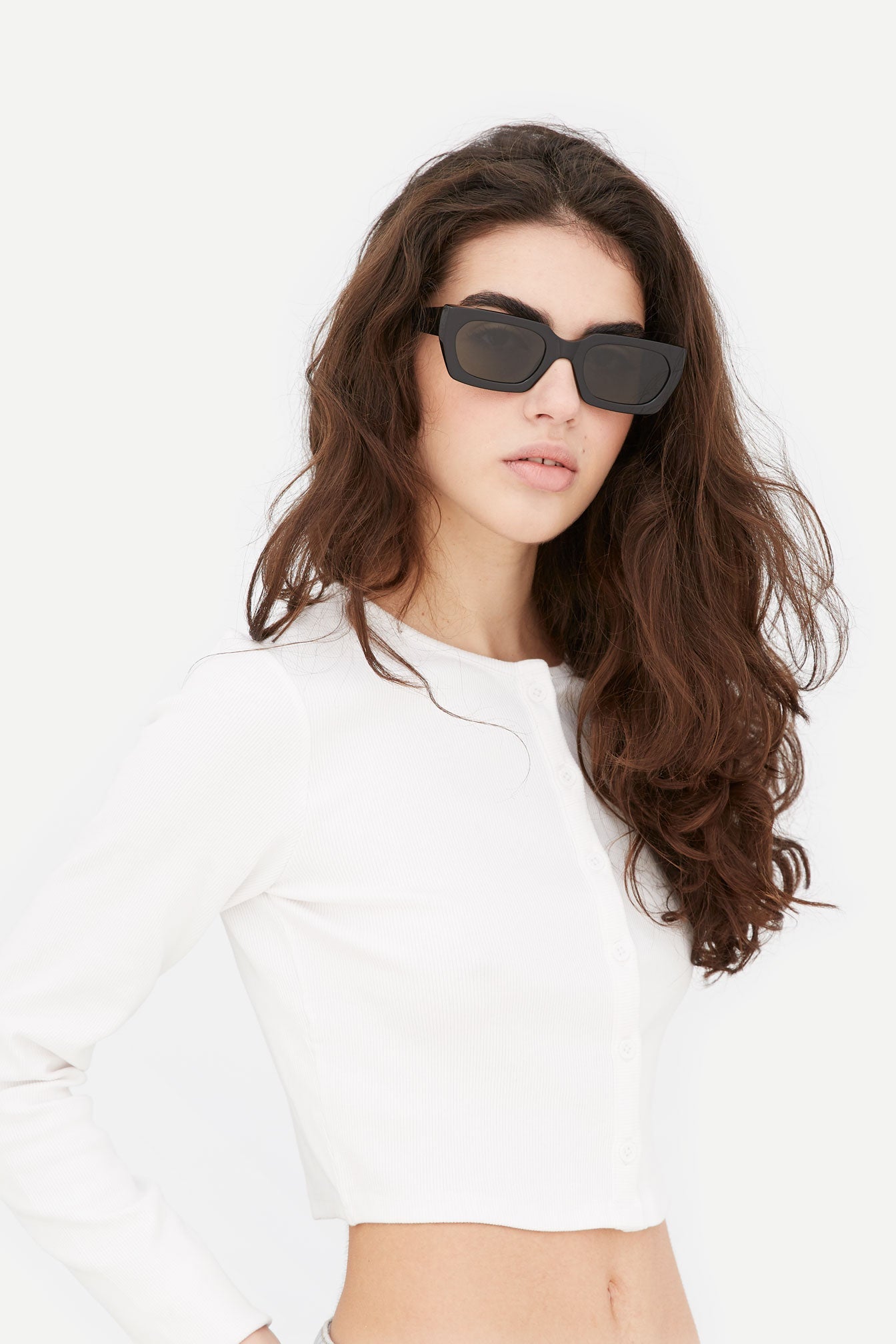 Teddy is a silhouette with a clean-cut and sharp edge. A determined wide frame with thick and bold acetate construction, Matching style with functionality. This model comes with black acetate and black lenses.