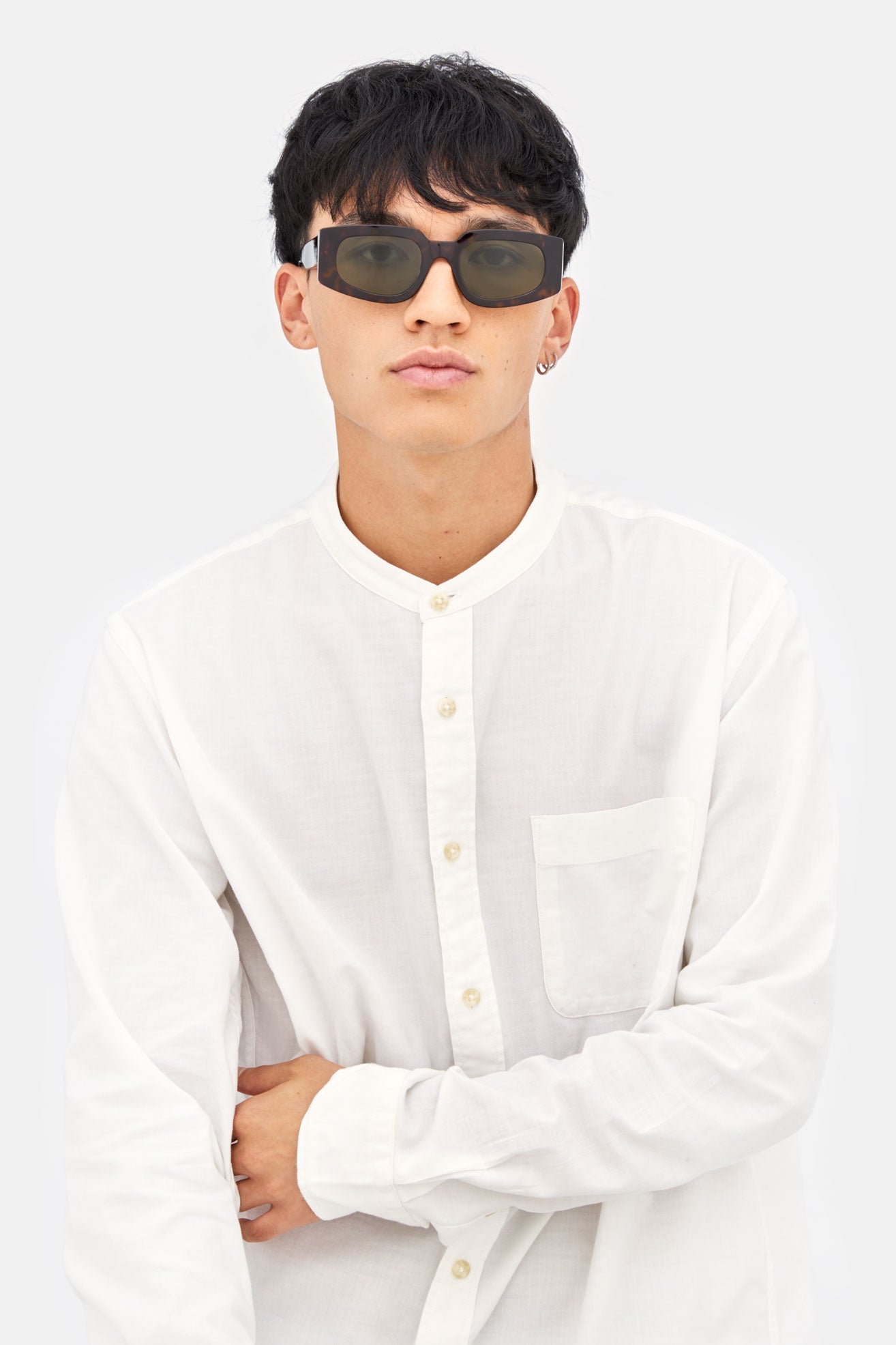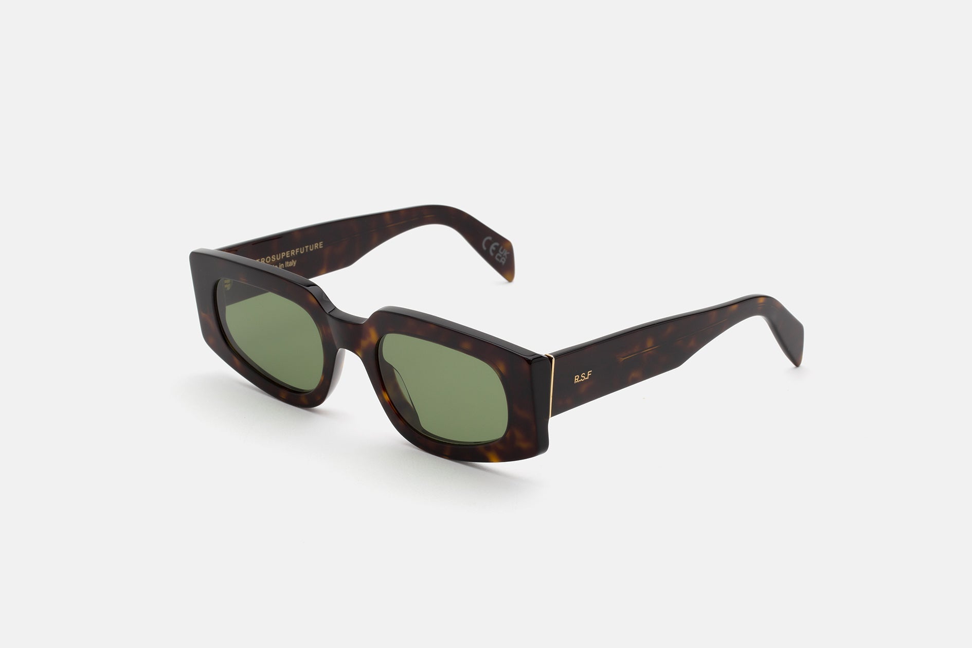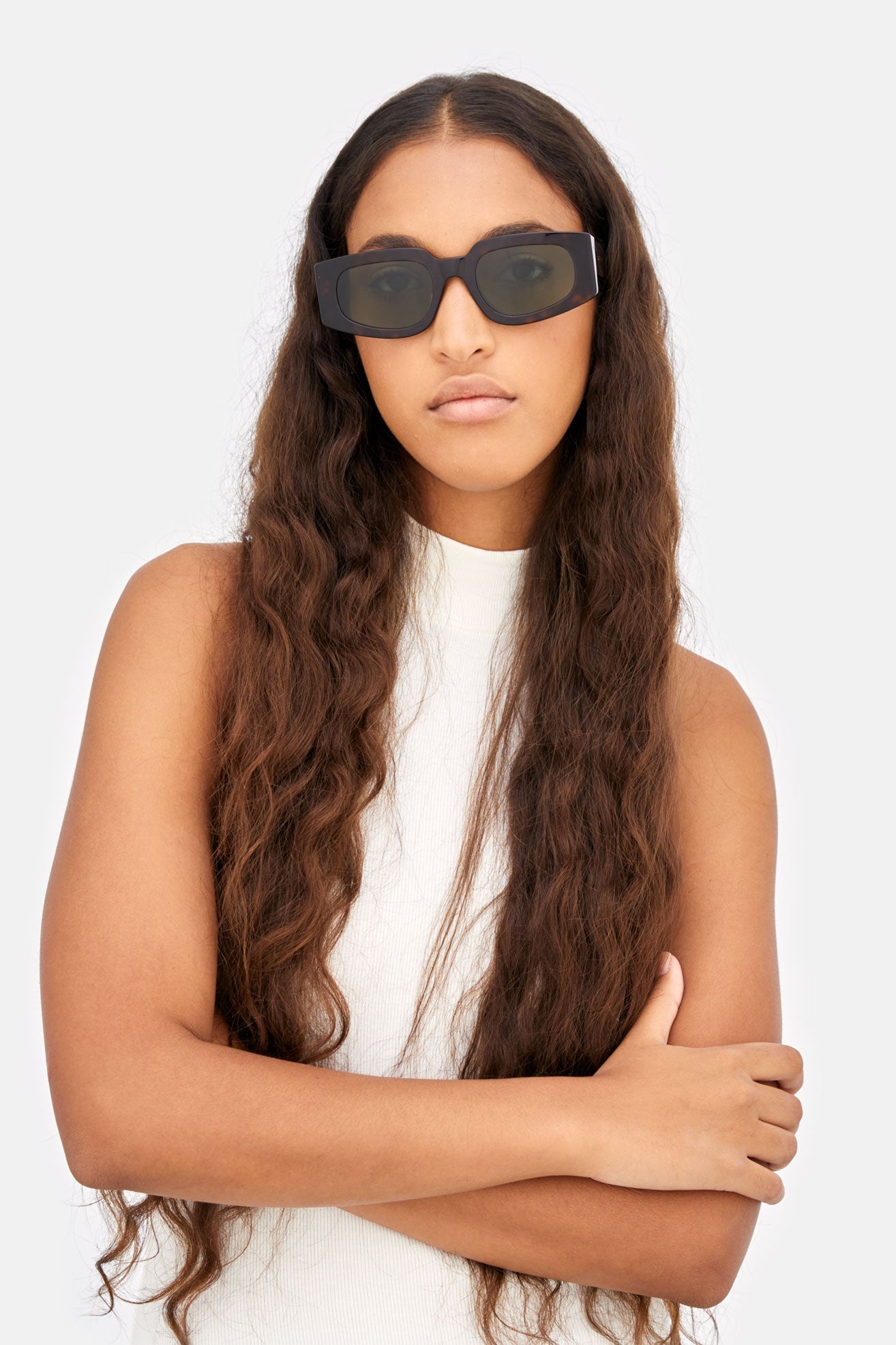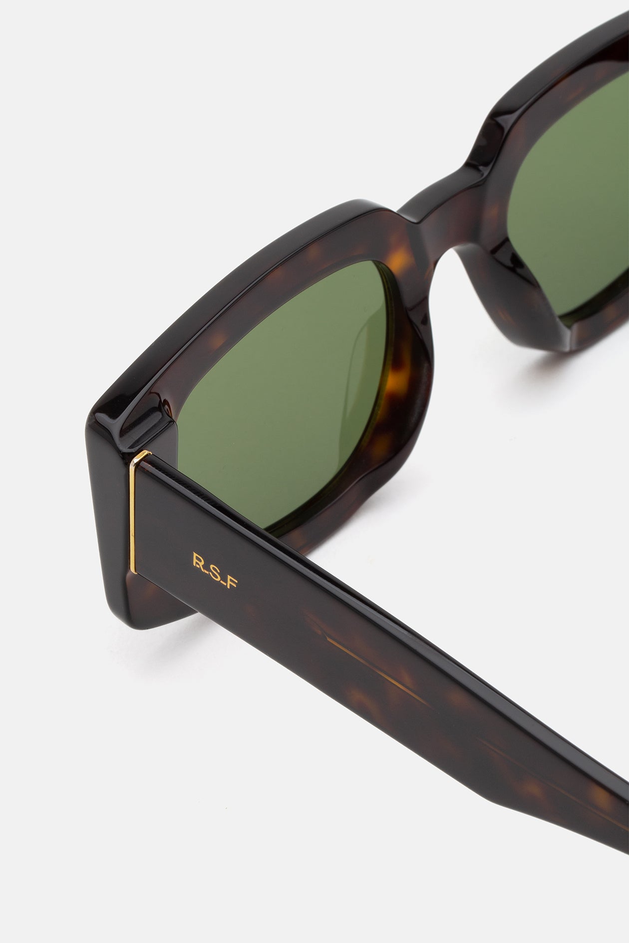 Tetra is a signature RSF frame: a sturdy, oversized silhouette with a distinct street edge. With thick rims and wide oval lenses, Tetra balances timeless classicism with modern, sharp features. Inspired by 1990s references, Tetra captures the perfect blend of understated elegance and raw edginess for an effortless everyday style. This version comes in an elegant dark Havana acetate and bottle green lenses.