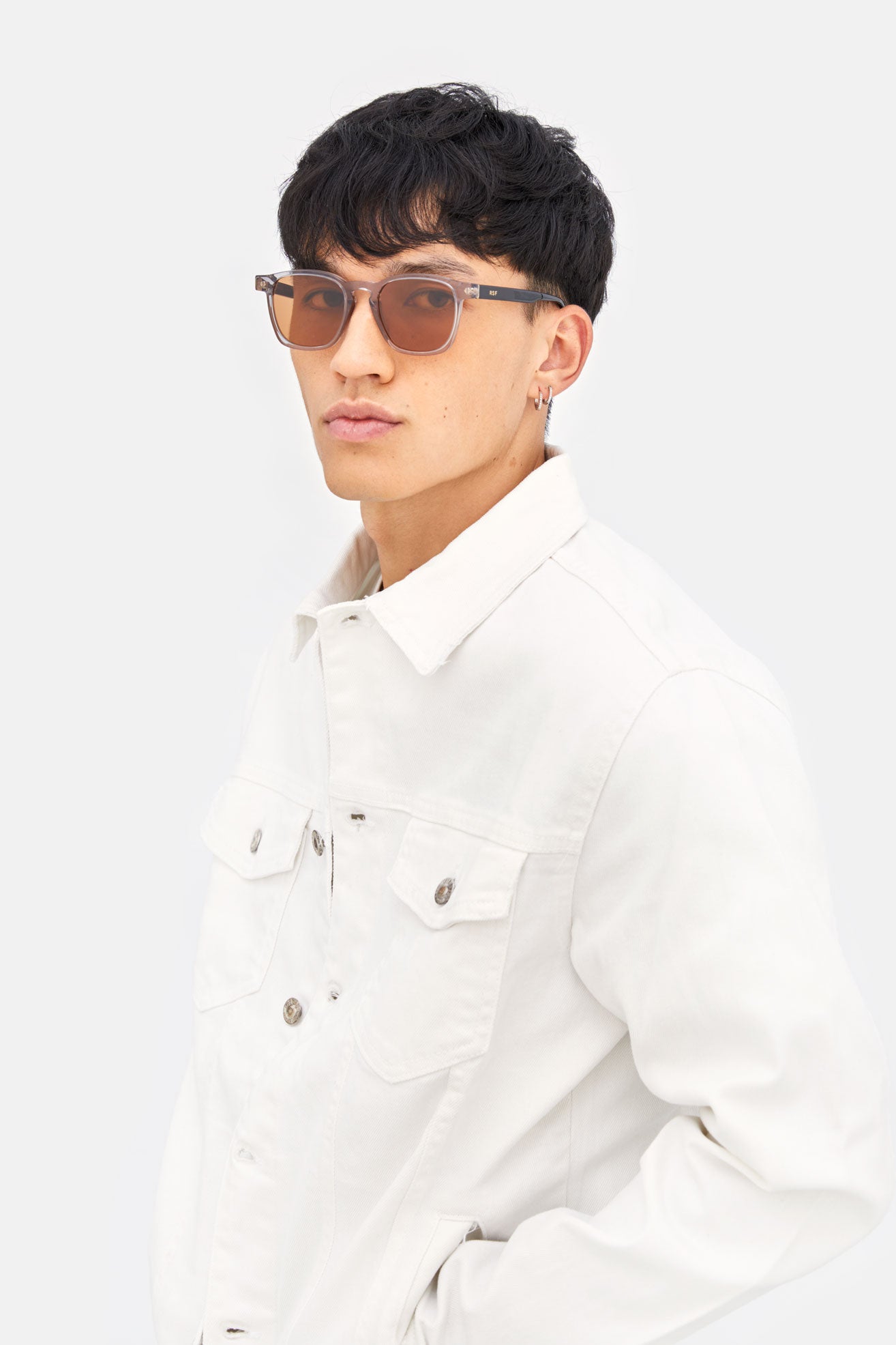 Unico is an essential everyday silhouette, the expression of a timeless staple without putting aside identity and character. A familiar shape, Unico evokes comforting vintage traits, such from different eras, refreshed and updated for a contemporary aesthetic. The shape features clean, polished lines and well-balanced geometries as a testimony to the exceptional craftsmanship of RSF design. This version matches an elegant grey crystal acetate with rich brown lenses and sturdy black temples.