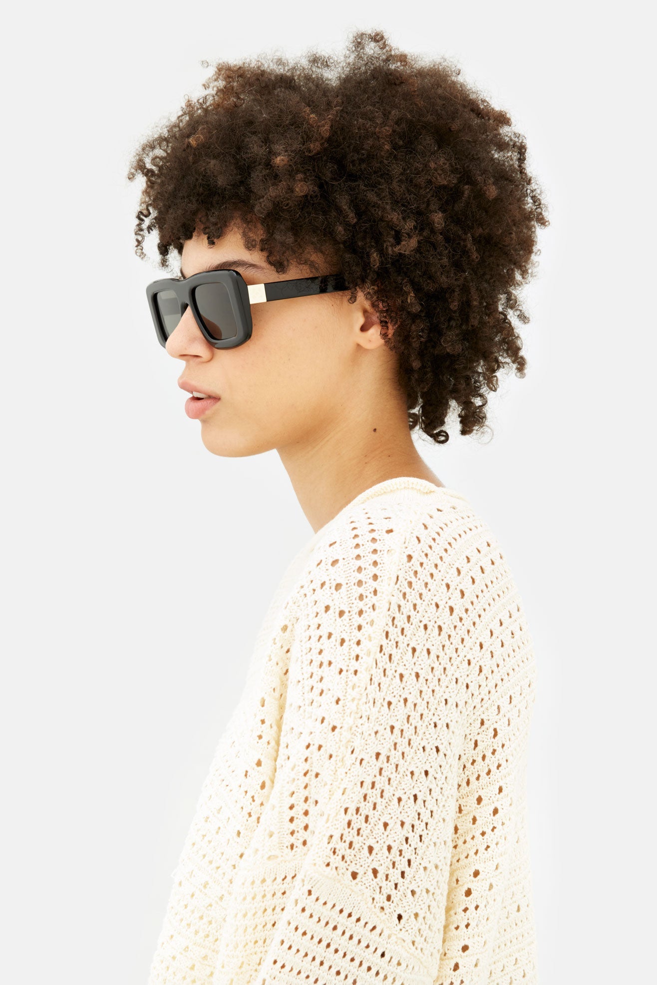 Virgilio is a design with a whole lot of meaning, starting from its name and origin of the shape. Other than the black, the two color-ways have been created using rare and ultra-limited deadstock acetate, because even the most special things in life come to an end. This mask-like piece in full black features sophisticated gold detailing on the temples.