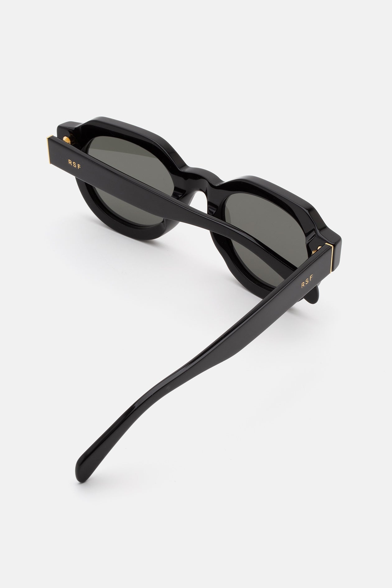 Vostro is a sleek rounded shape that captures the essence of timeless style, updating it with a contemporary design twist. Sharp, geometric rims are matched with soft oval lenses as an elevated version of classic rounded sunglasses. The model’s design is characterised by pentagonal shaped rims, with sturdy temple tips and a lowered nose-bridge for an essential yet determined, elegant piece. This version of Vostro features a shiny black acetate and matching lenses.