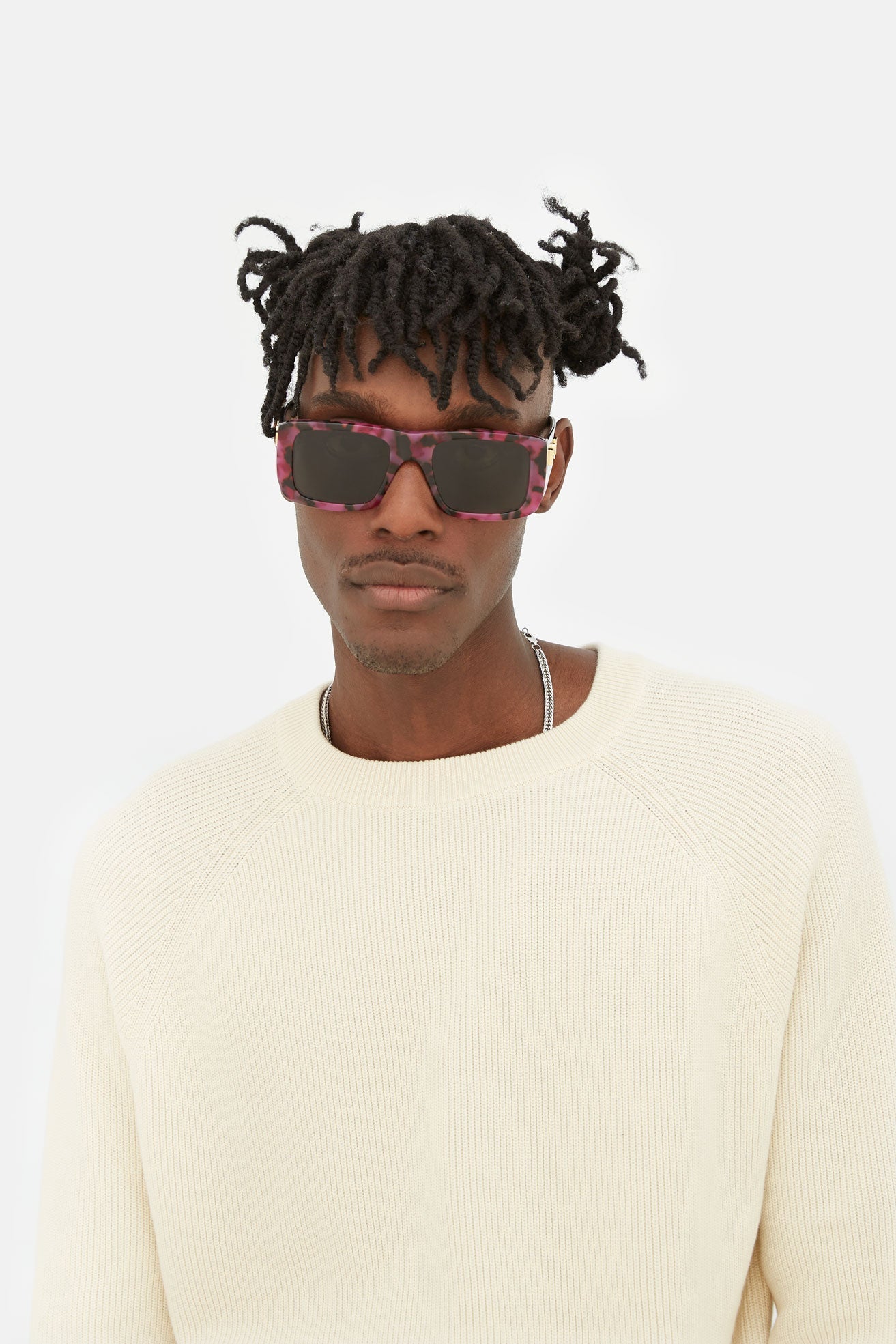 A key RSF statement piece, Onorato is a model inspired by 1970s references, from Aristotle Onassis to Miles Davis. A bold acetate frame with a sturdy, oversized design, Onorato features a straight upper line and a bold nose-bridge. Thick acetate rims curve around the temples match its distinctive wide temple tips. Oversized and with a street edge, this version comes with black acetate and matching lenses.