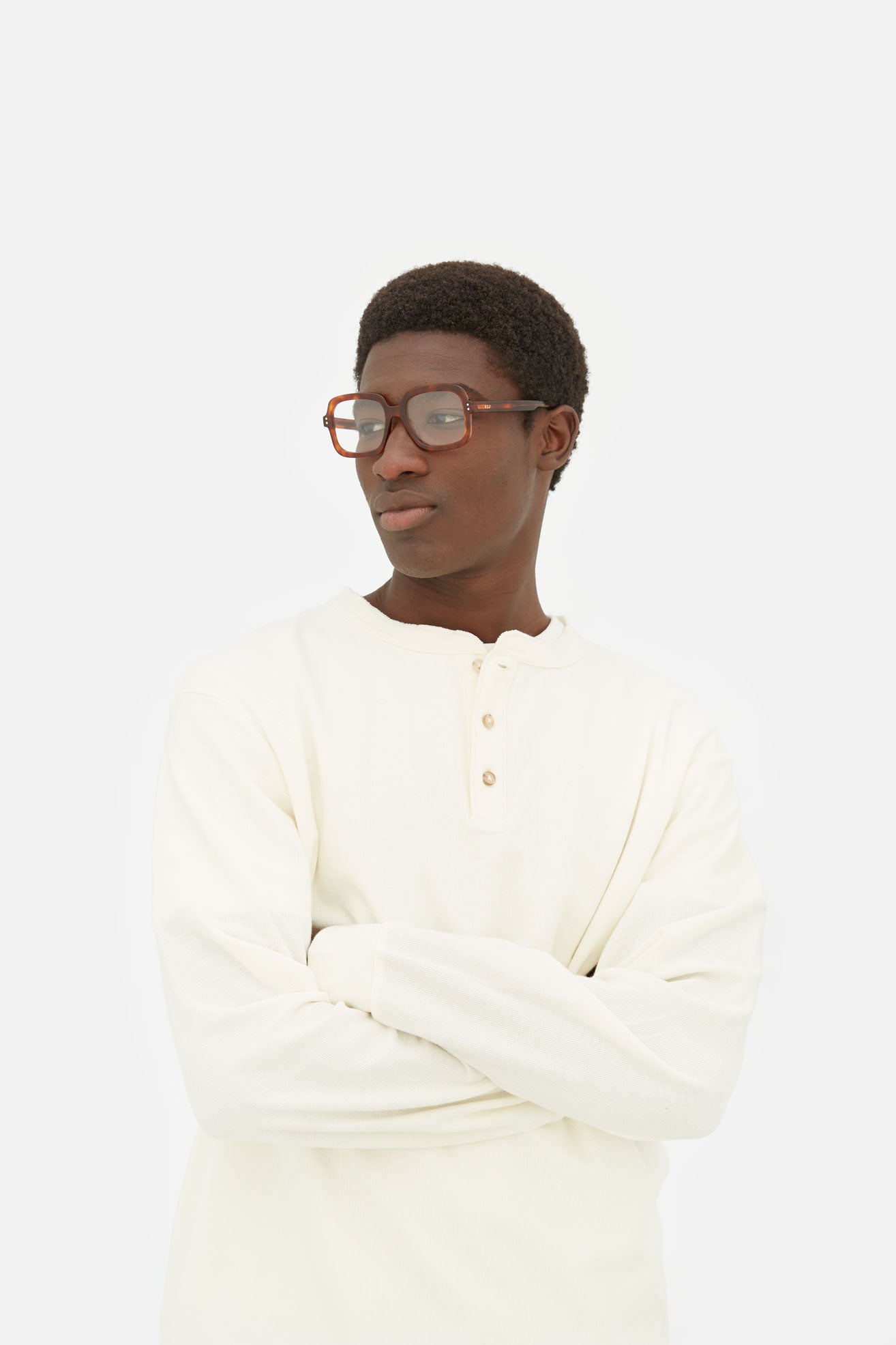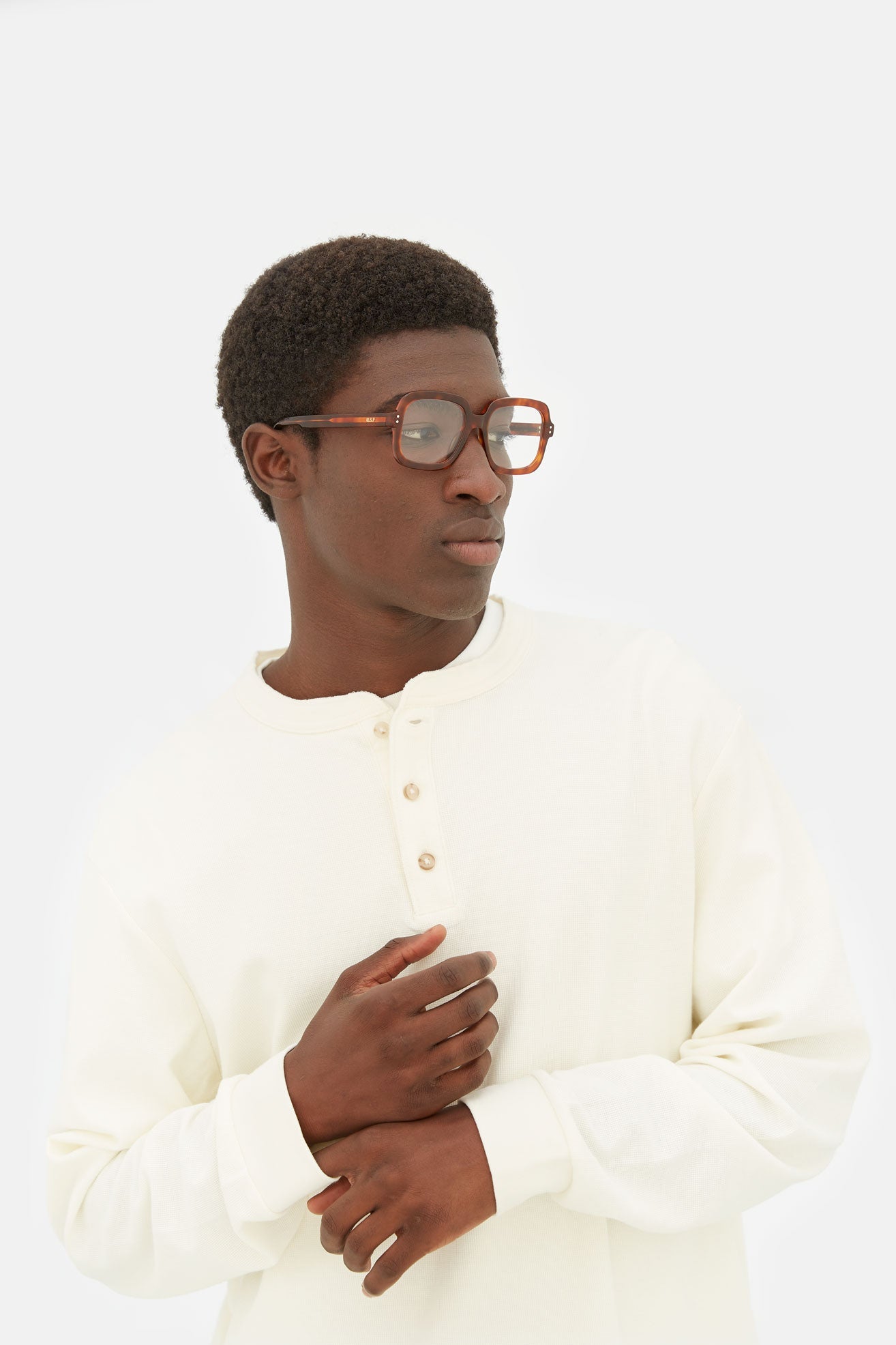 Celebrating edgy and playful oversized 70s designs for everyday optical frames, Numero 103 captures the glamour and style of the disco decade, adapting it for a modern vision. This squared, oversized model features thick acetate rims that have been further sculpted for lightness and functionality in daily use. Numero 103 is designed for those looking to stand out in the busy landscape. This version comes in a soft and light Havana acetate.